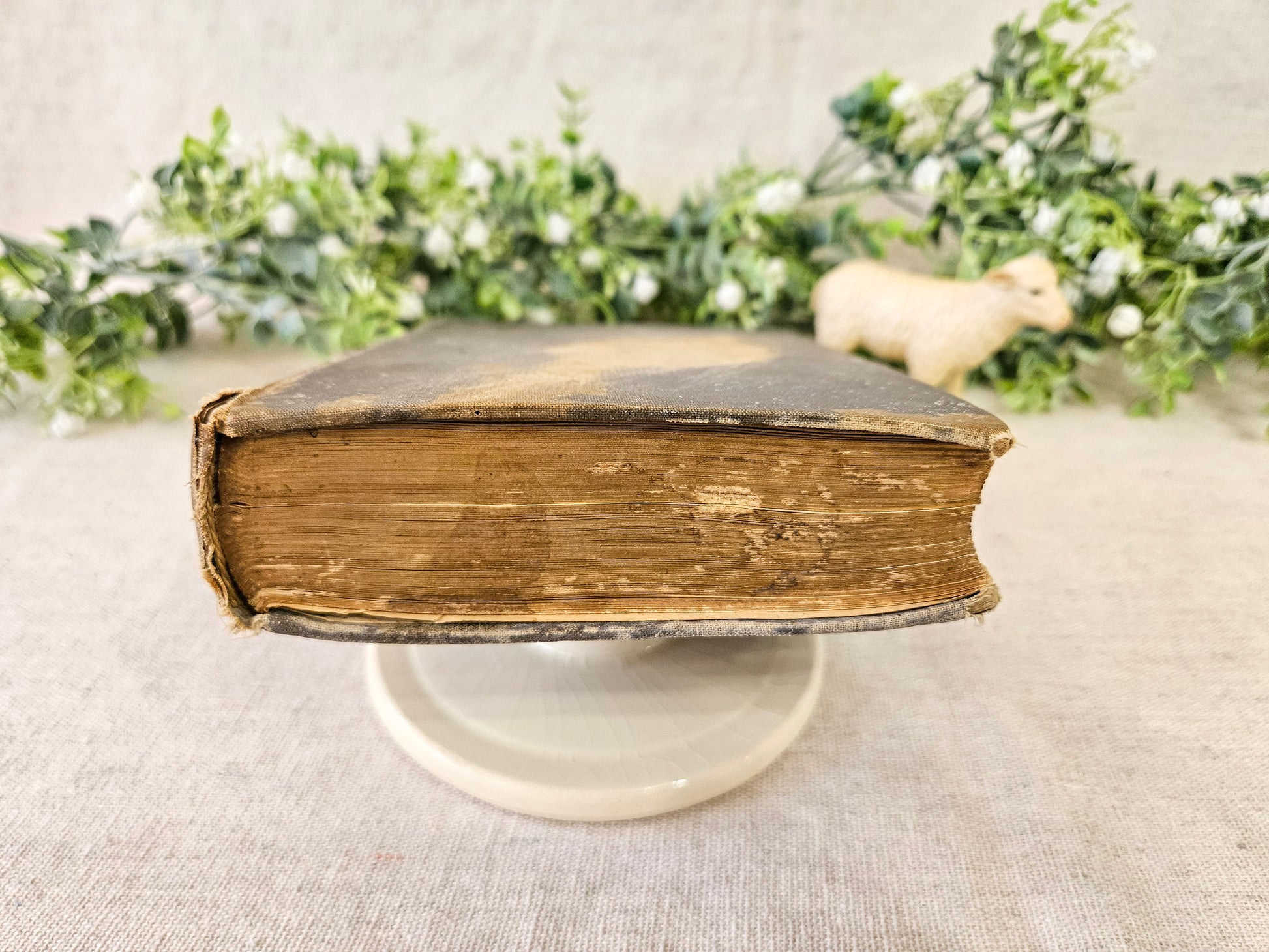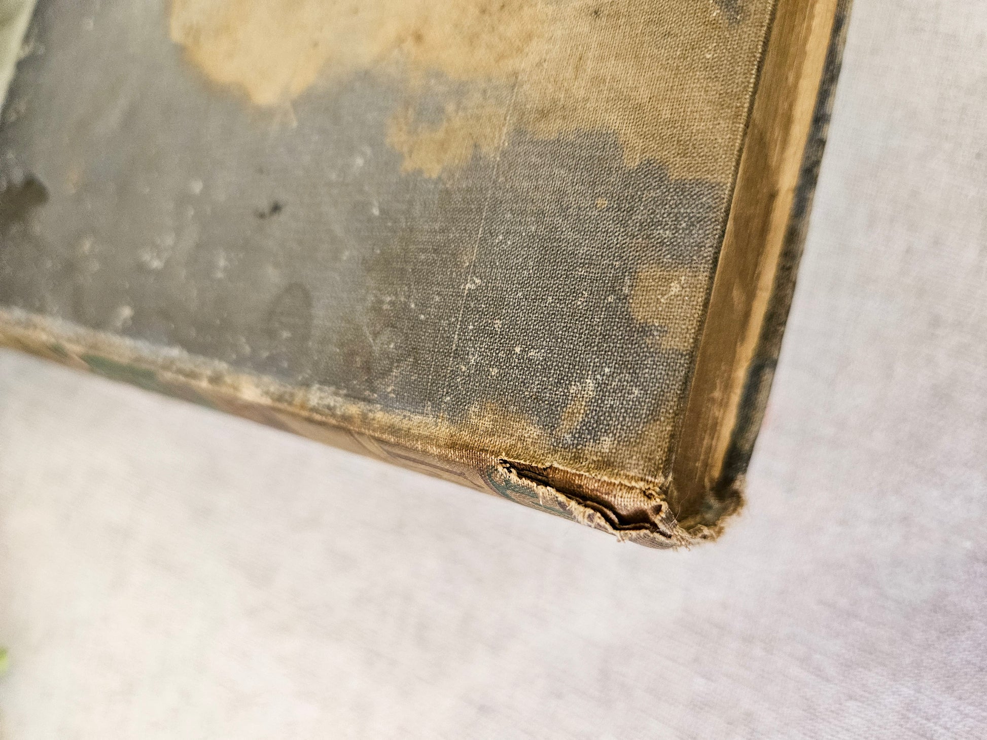 The condition of the book is very worn. Pages are still intact with the exception of the first page as shown in photos.