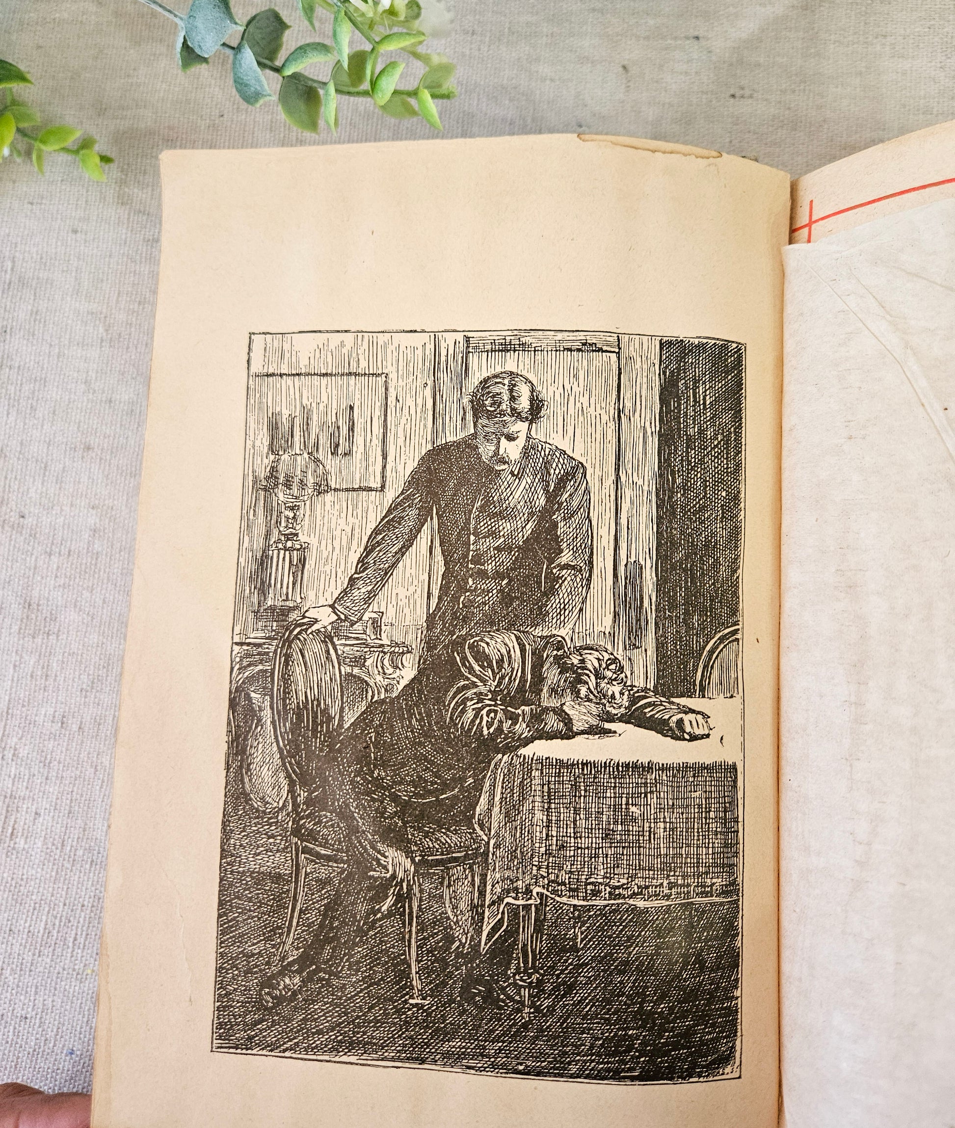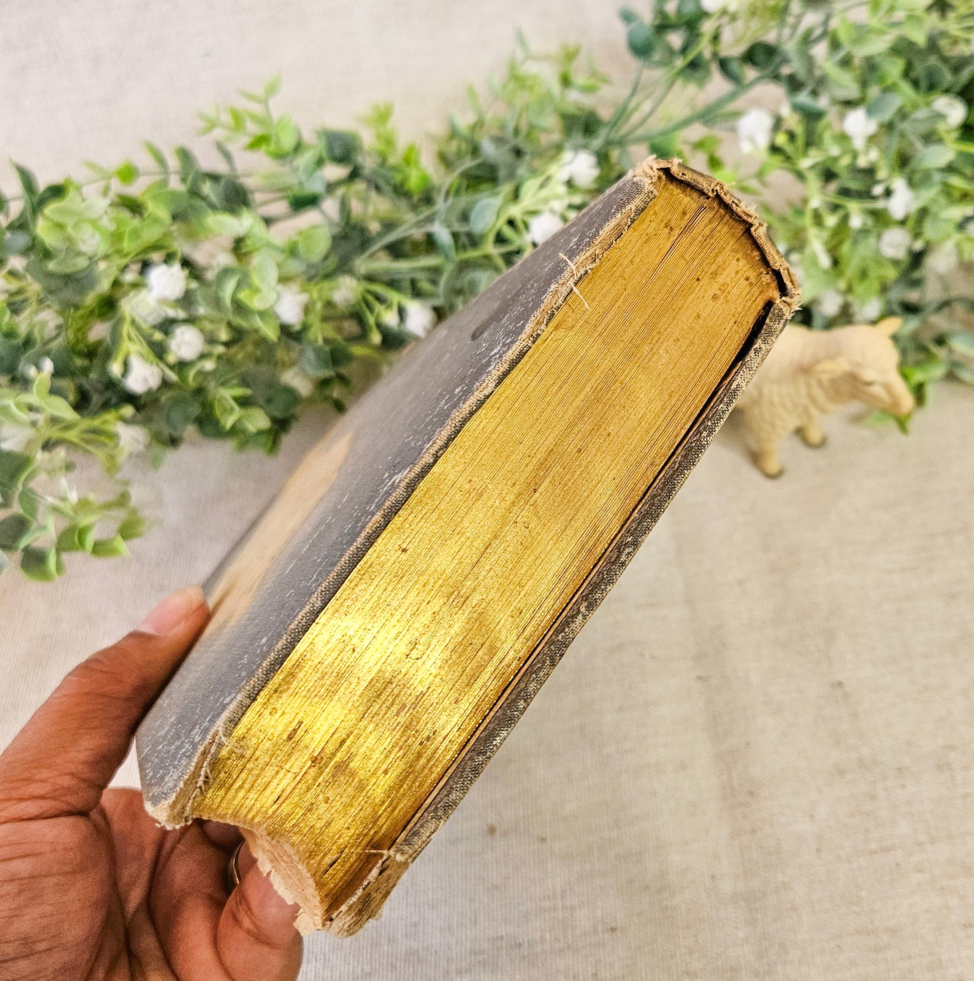 Gorgeously bound in a blueish gray hardcover cloth with a flower motif design outlined in brown with green decorative blocks and designs that extends to spine, gilded text blocks, and gilded page edges. Inside is finely illustrated with some black and white illustrations throughout. Each page, aside from the illustrations, has the Red Line Poets* classic red border to add a touch of detail and interest amongst Meredith’s “Lucile.” Truly a stunning edition for any collector or lover of old and rare poetry books!