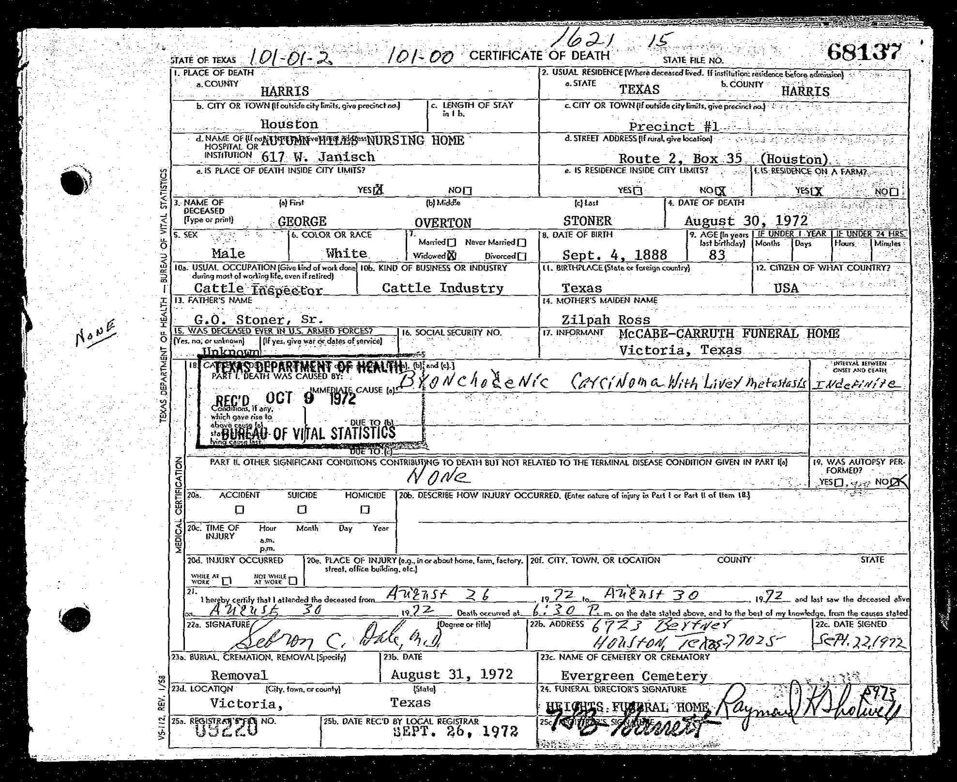 * The death certificate is not included. It is only shown for provenance, and believed to be based on short research, George O. Stoner from the photo.