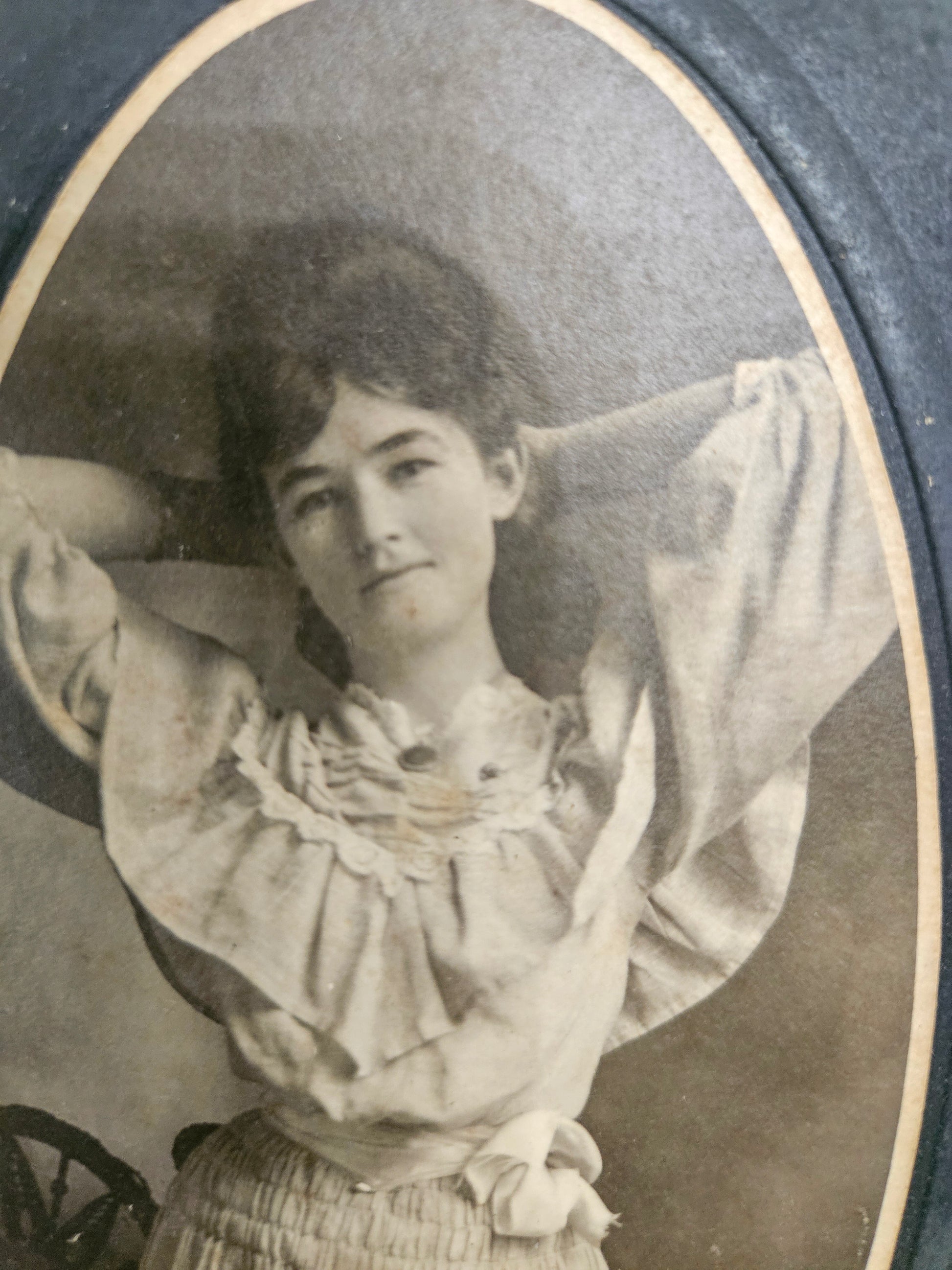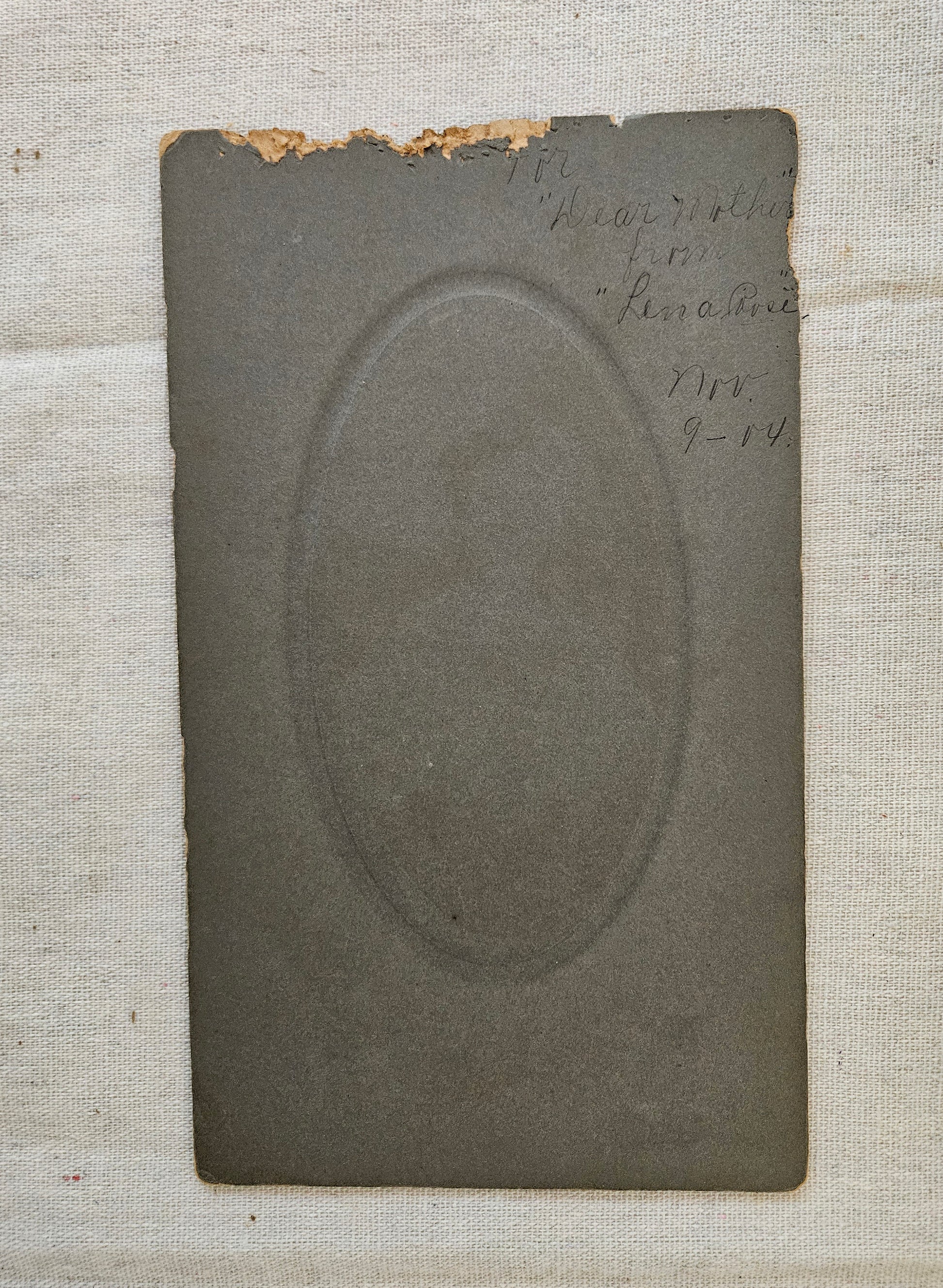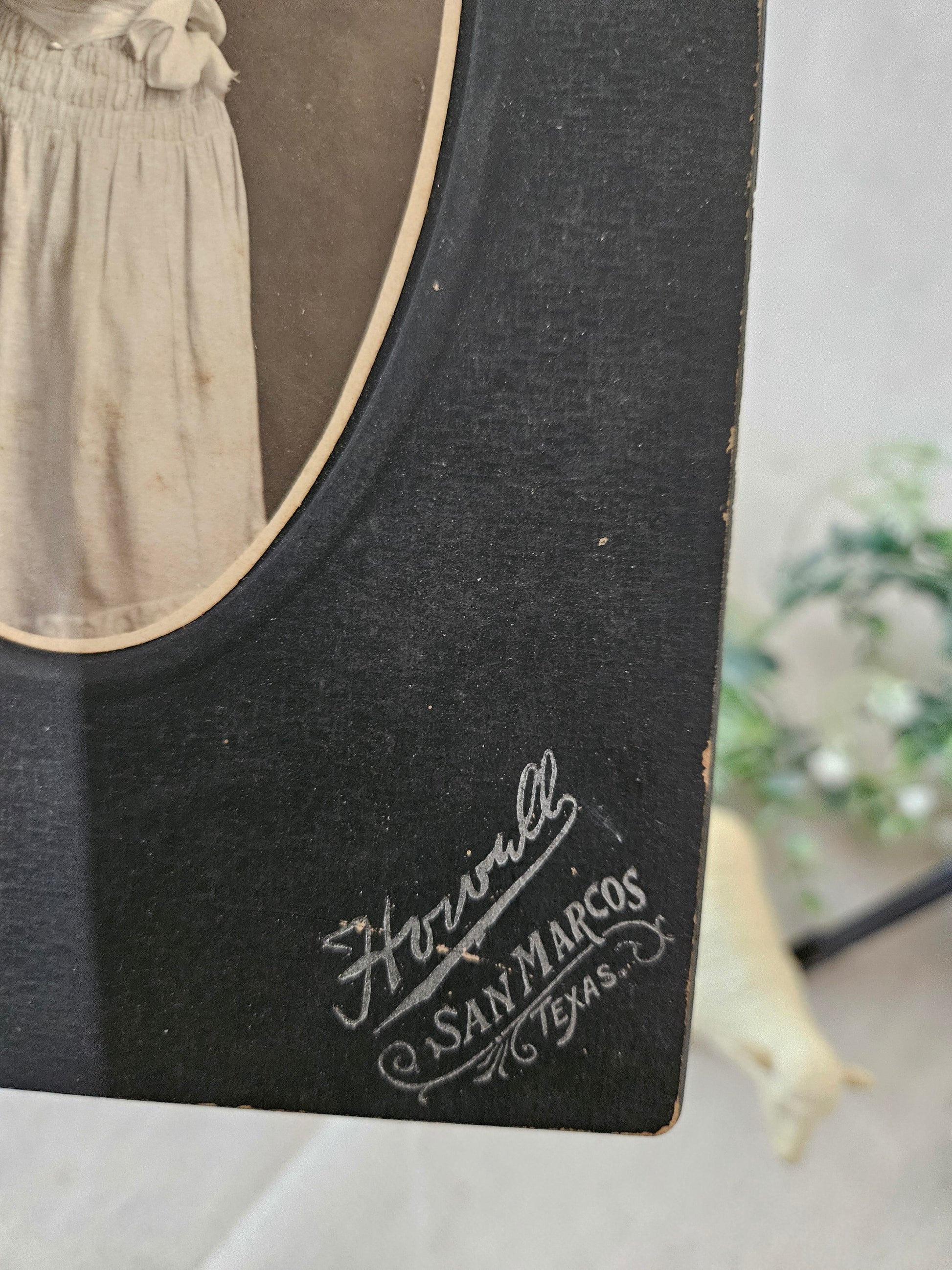 This beautiful young lady exudes confidence. Dedicated to, "Dear Mother" from Lena Rose. Dated Nov. 9-04 The studio name is stamped as Howell San Marcos, Texas.