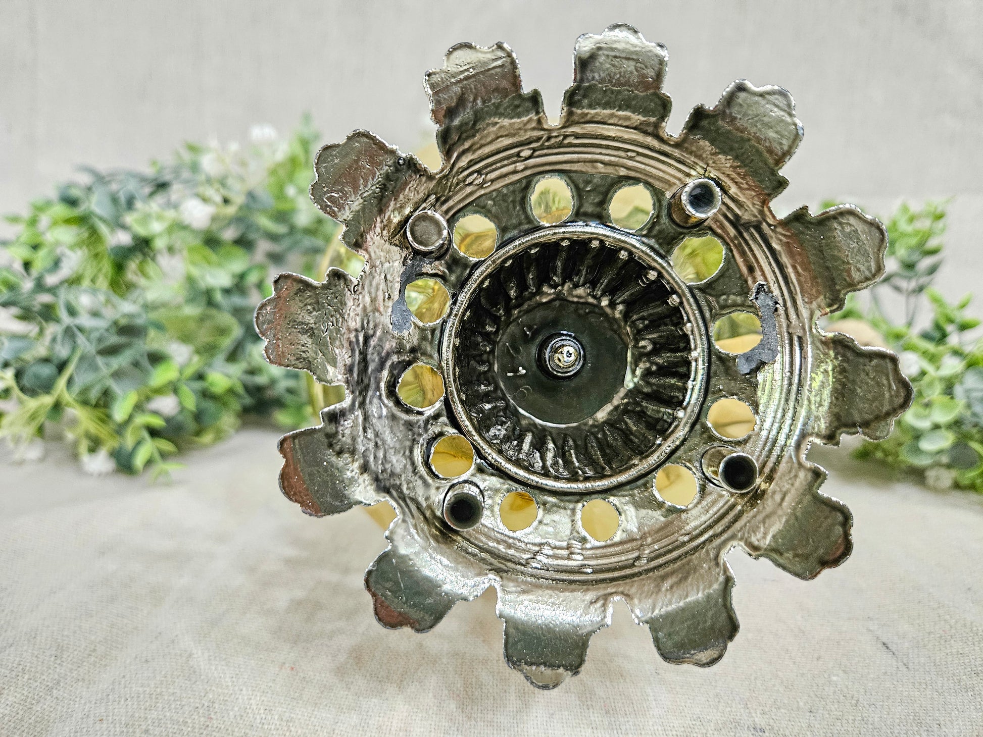 Measures Approx. 8.75" tall top candle holder is 2.75" wide, bottom bowl is 5" wide