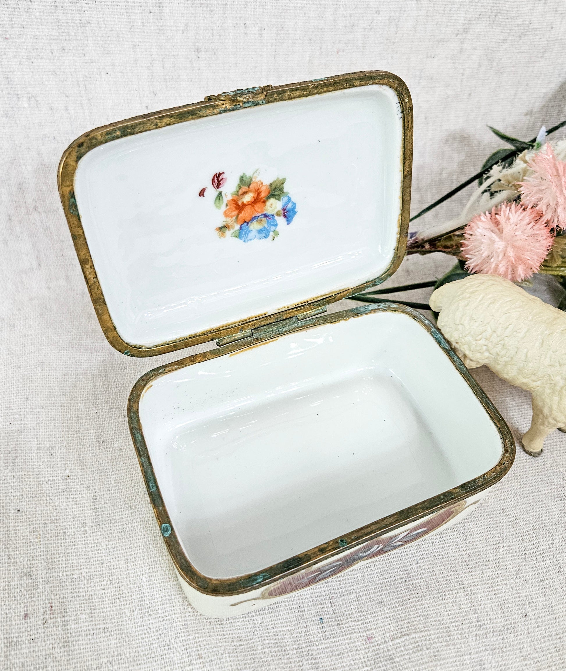 Antique Porcelain Jewelry Trinket Casket Box Hand Painted Made in France