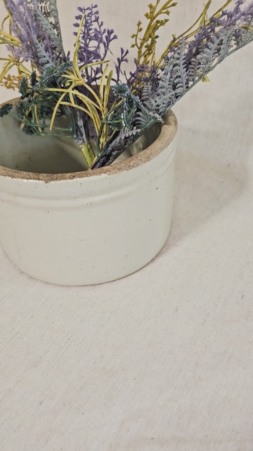 This Antique Stoneware Crock is a timeless piece of history that adds charm and character to any modern home decor. Its durable and versatile design makes it a great vessel for anything from plants to hand towels. The light creamy beige color enhances the overall aesthetic and adds a touch of elegance to your space. Made of heavy glazed stoneware, circa early 1900s.