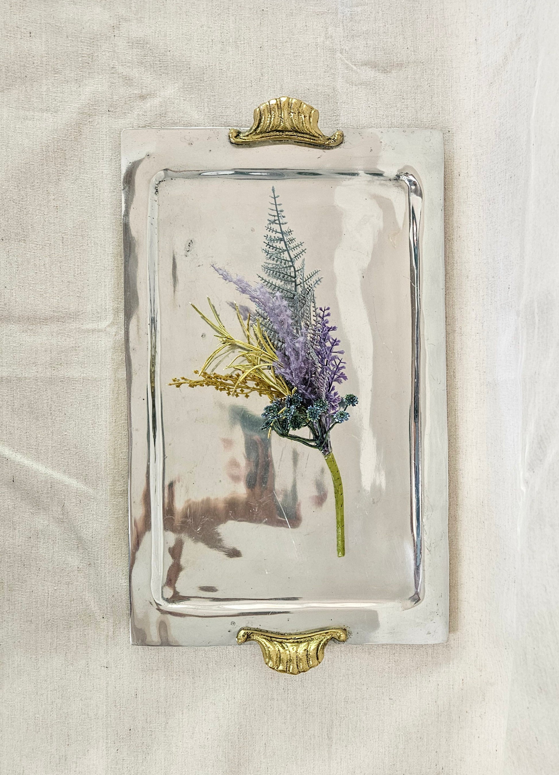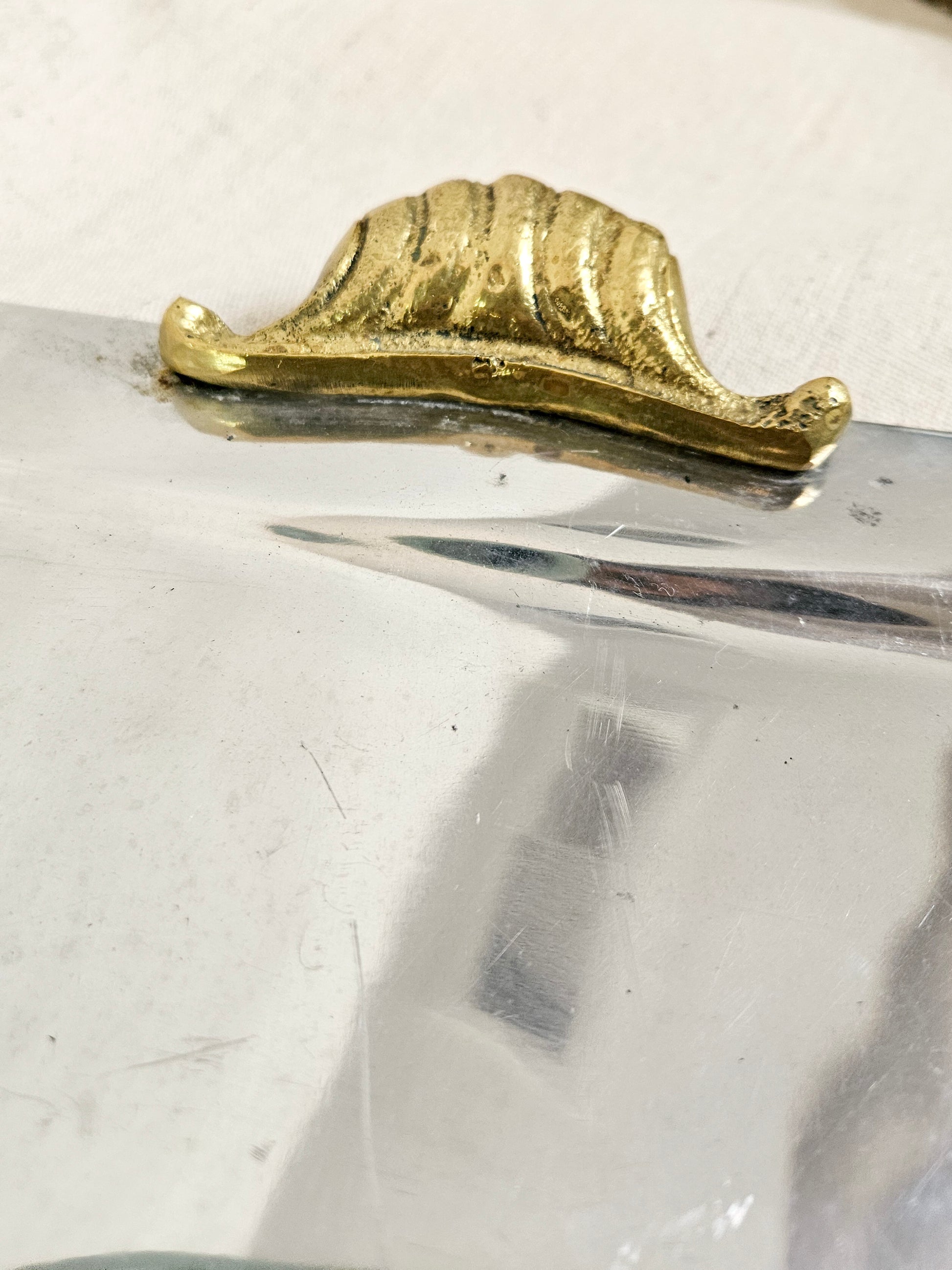 A sleek art deco style serving tray, perfect for holding and displaying any decor. This butler tray can transcend design genres and fit many different decor styles.