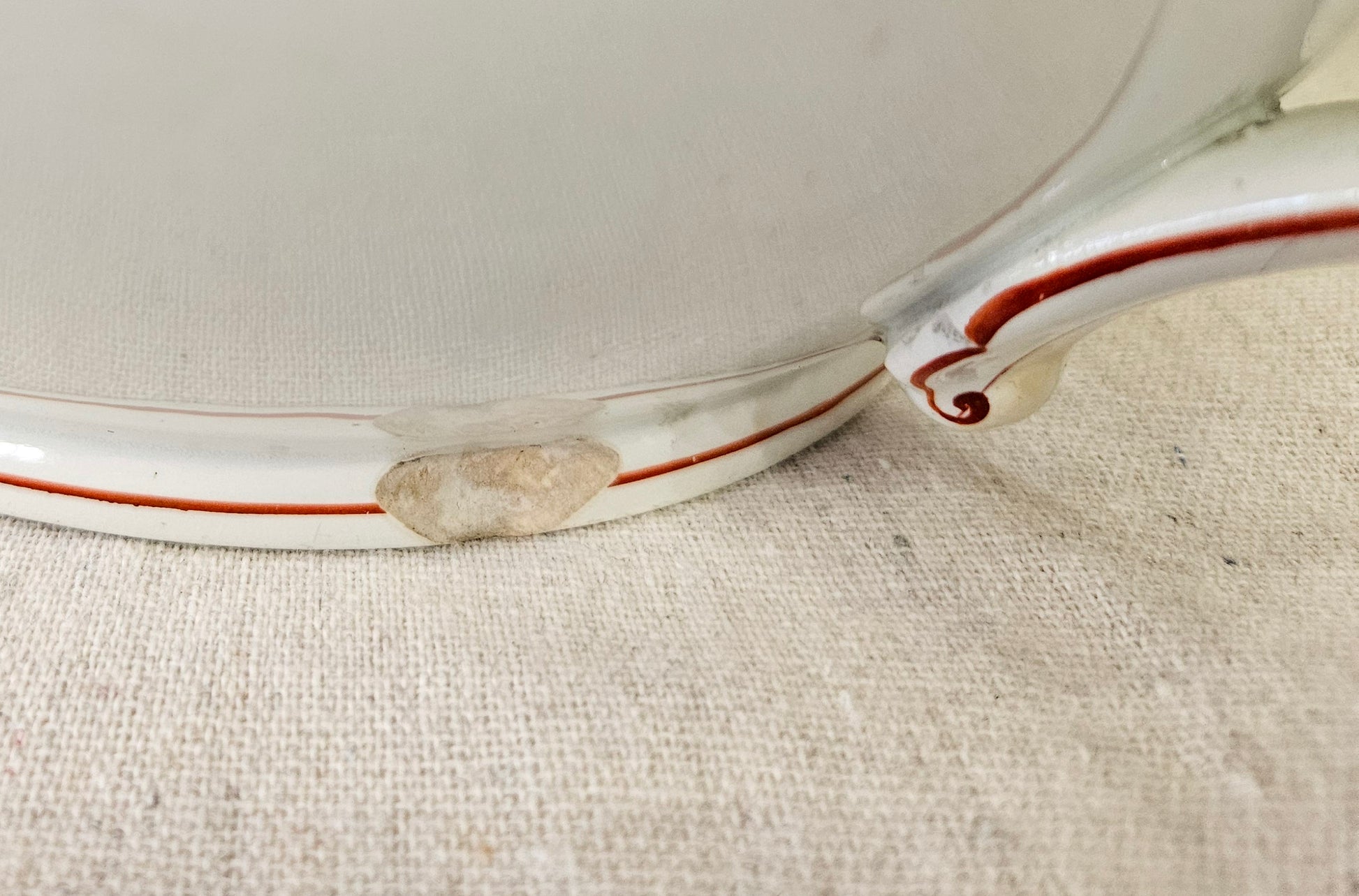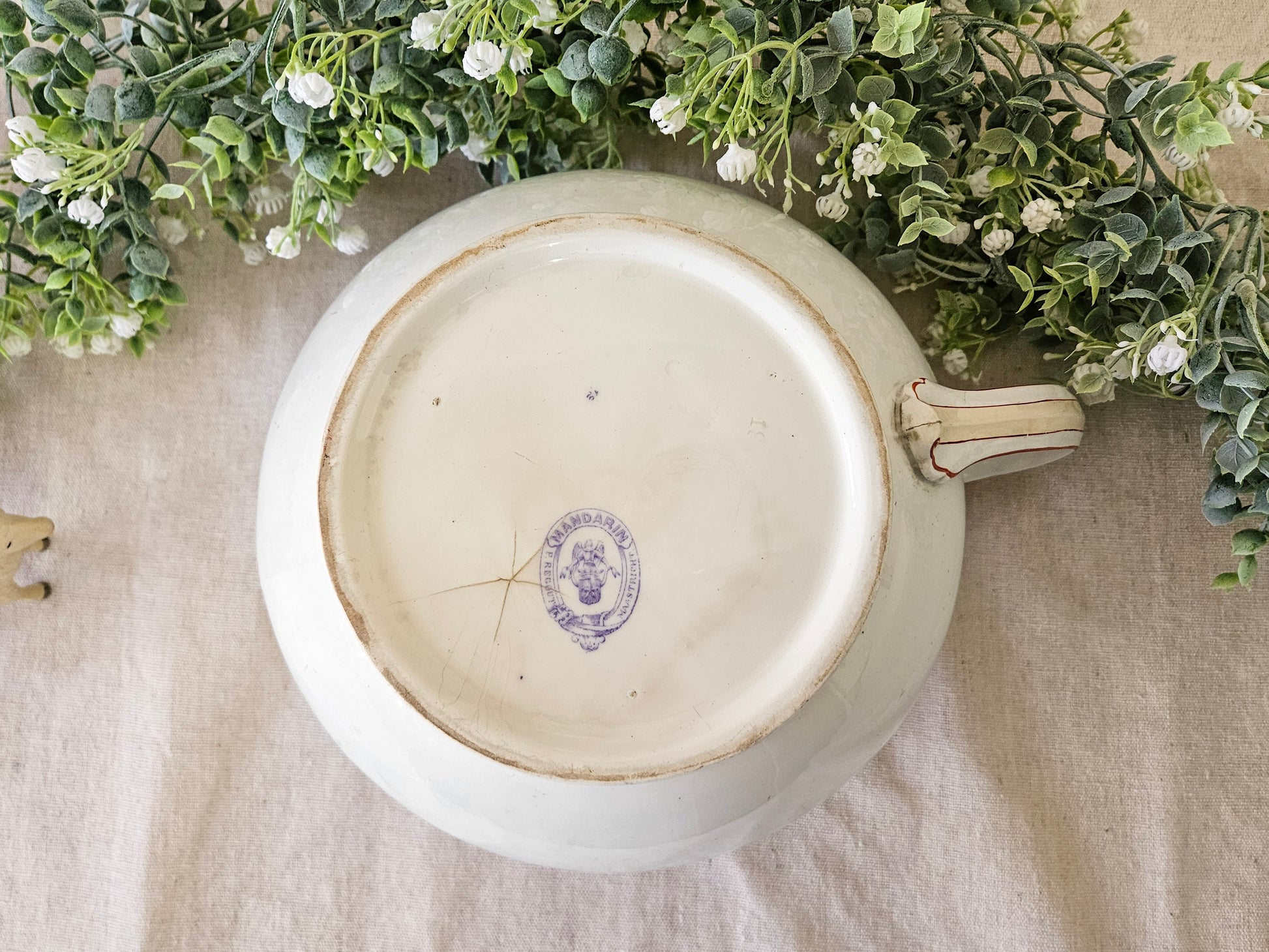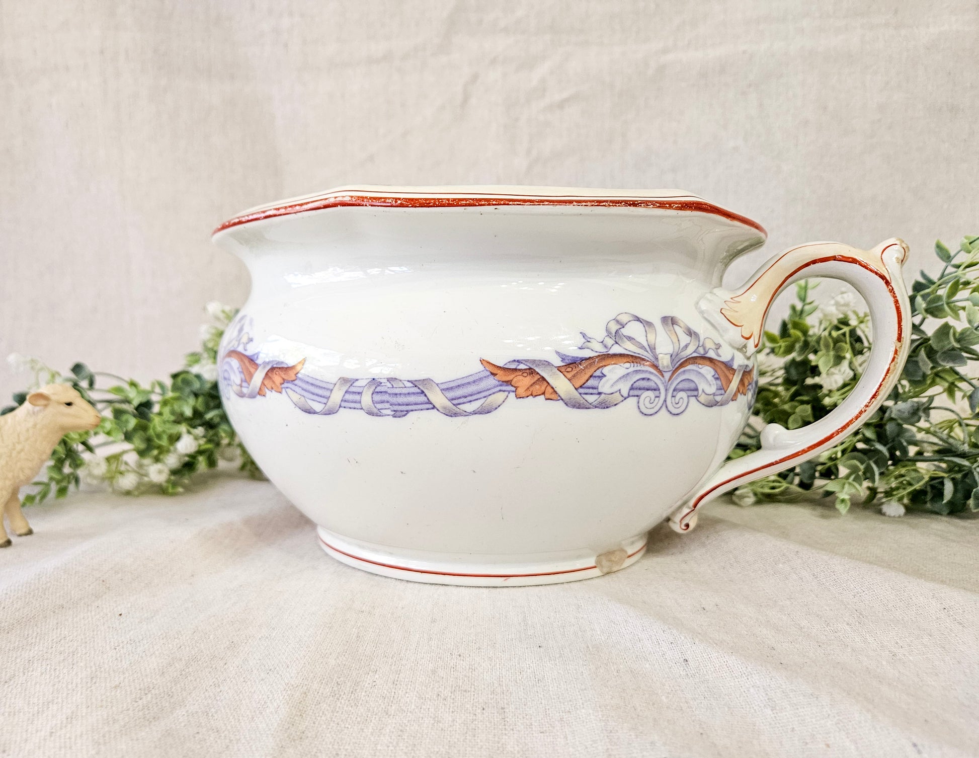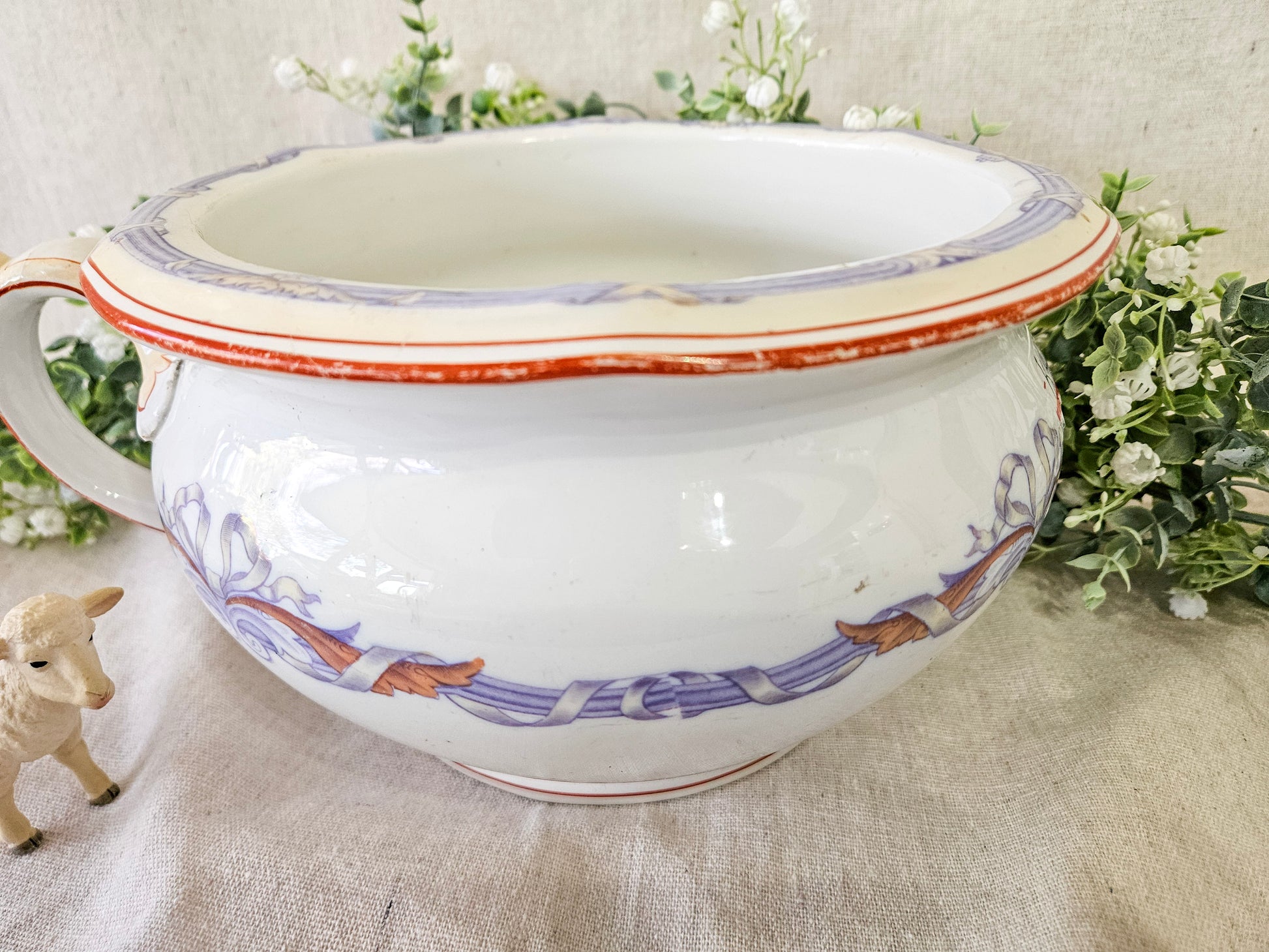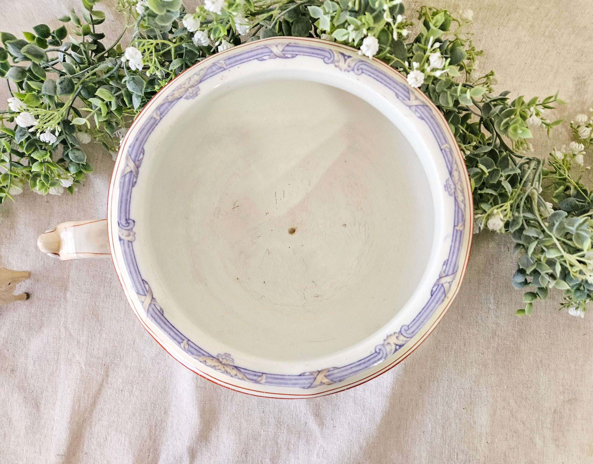 Available is a very early 19th Century Mandarin Petrus Regout Maastricht, Holland Chamber Pot. According to stamp dating this chamber pot could have been made as early as 1836 and as late as 1880. An amazing, preserved piece of private history that can now be publicly displayed in any room, filled with aromatic flowers! Truly a conversation piece.