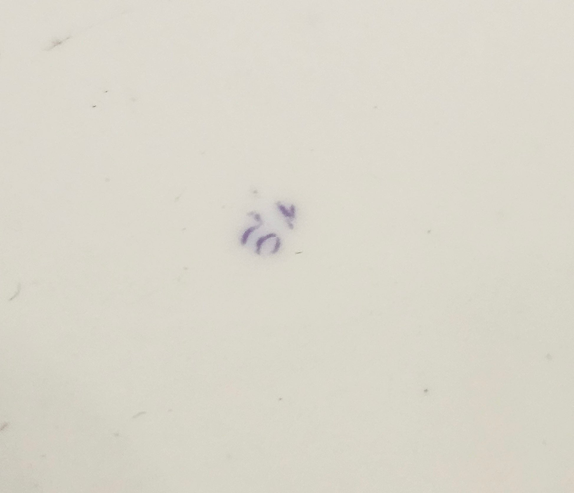 There is a sizable chip on the bottom edge of the bowl, as photographed. Some of the paint has started to peel around the rim. Scratches are visible inside and in other areas. Condition is good, considering the age and original purpose of this pot.