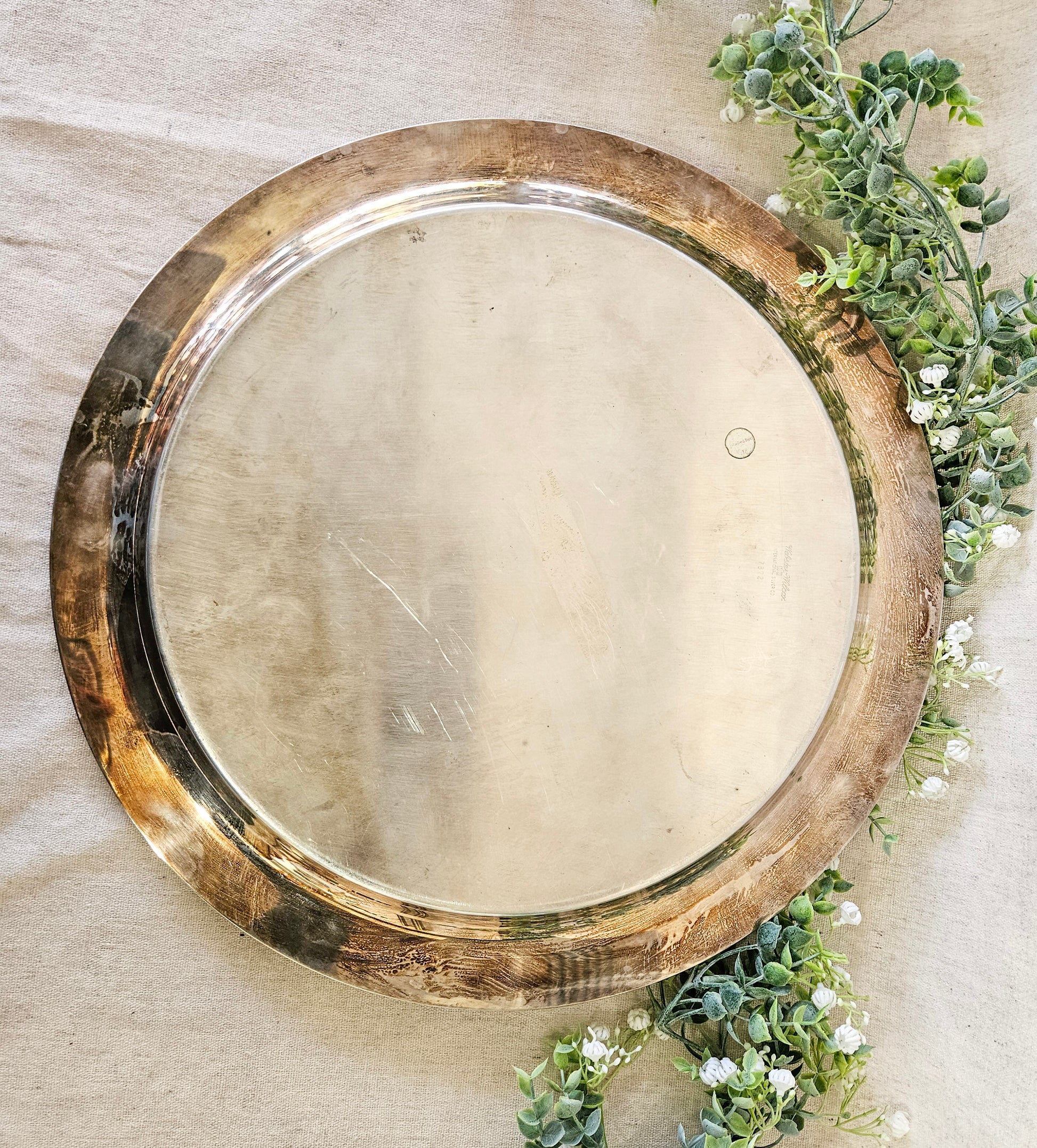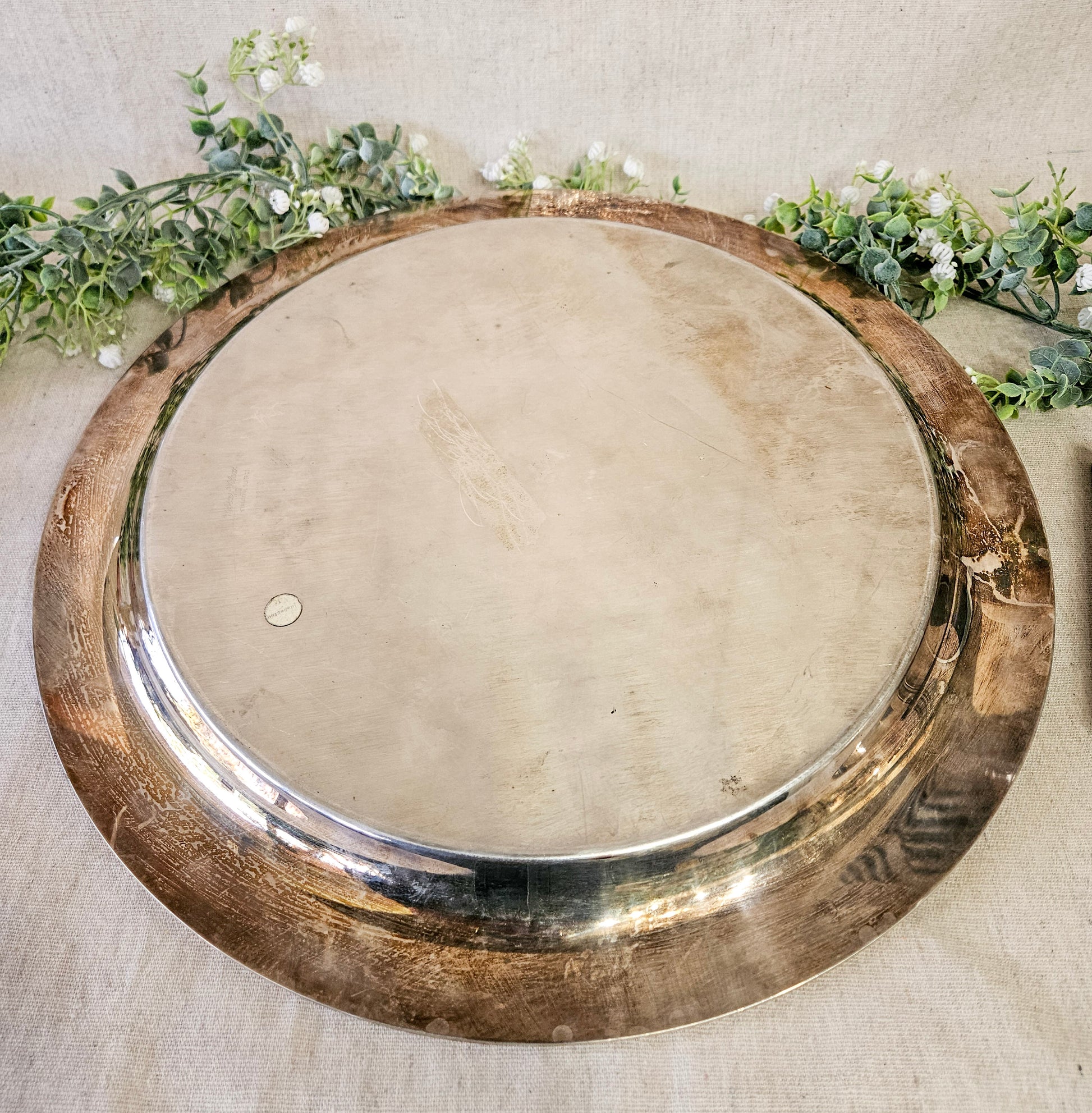 This tray would make great barware. It is rare to find silverplate trays with a masculine look. There is patina, heavier on the backside. Some visible scuffs.