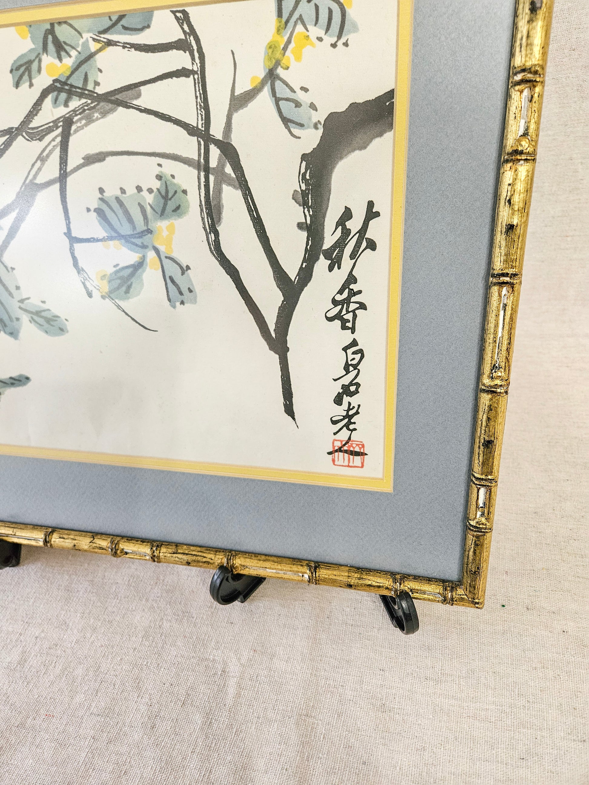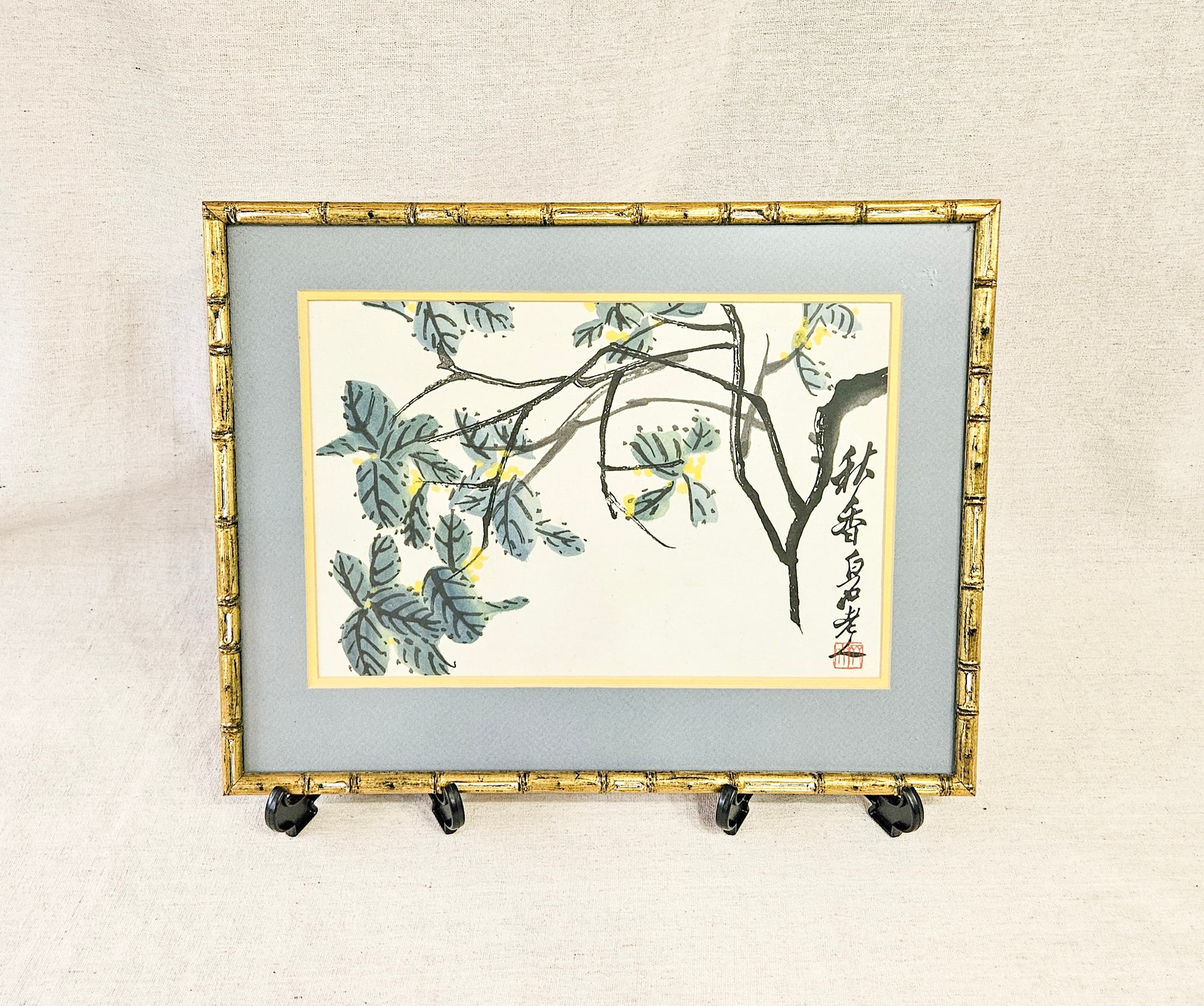 Available is a woodblock print titled "Autumn Fragrance". It is attributed to Qi Baishi, a renowned 20th-century Chinese painter and printmaker celebrated for his depictions of natural scenes. Qi’s works, especially from the mid-20th century, often showcase a fluidity and simplicity that resonated deeply with both his contemporaries and collectors.