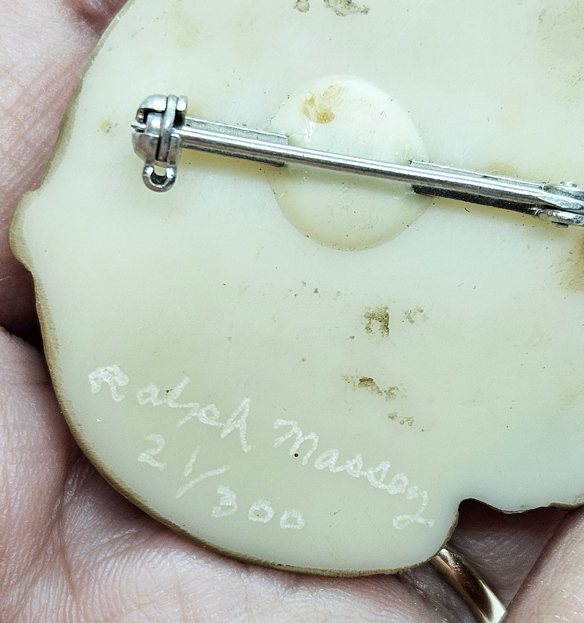 Available is a rare signed Ralph Massey Mouse Brooch Pin. It appears to be made of a painted resin material. There is some chipping in the paint. You'll want to get this one as it is a hard to find piece.