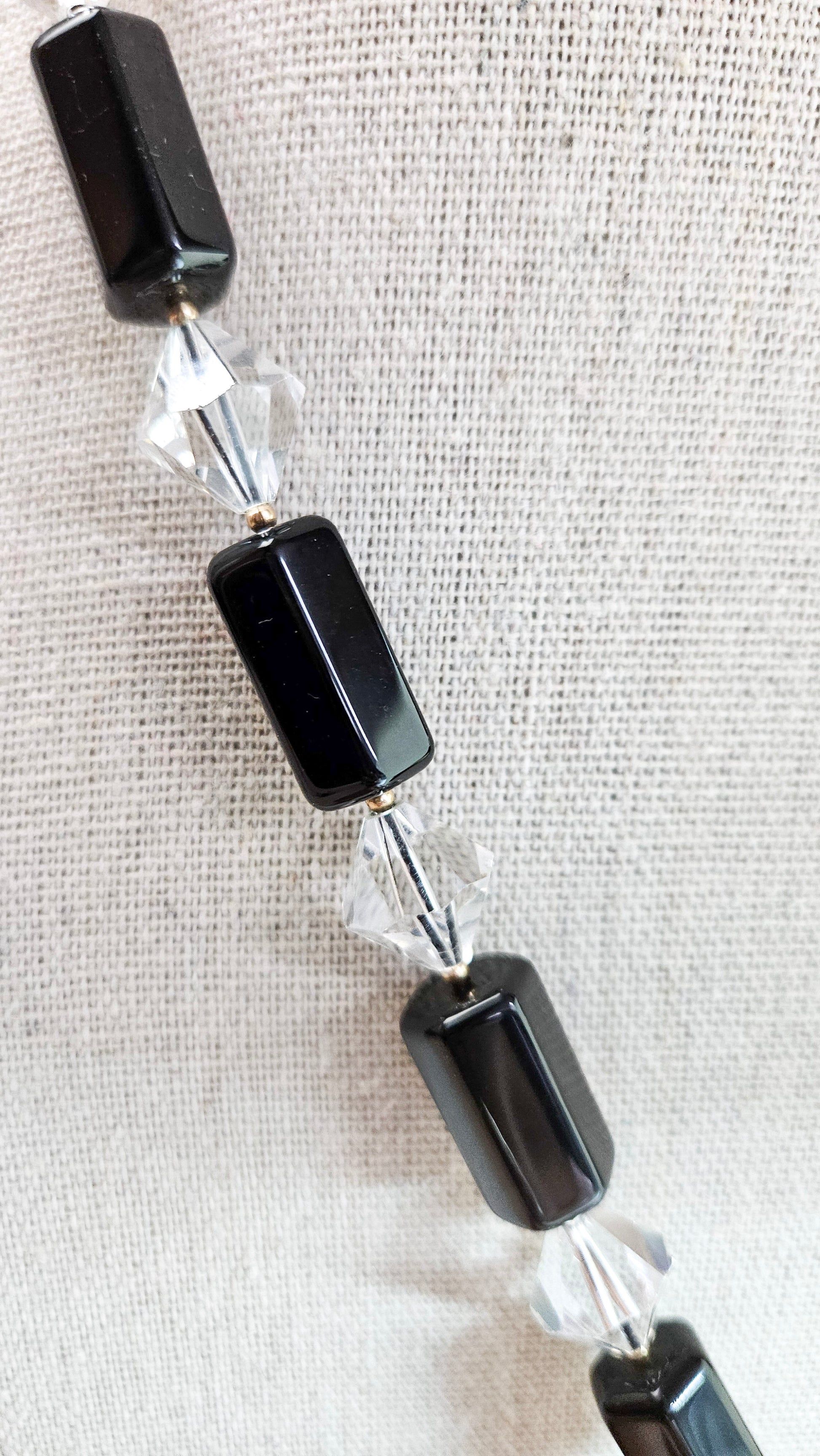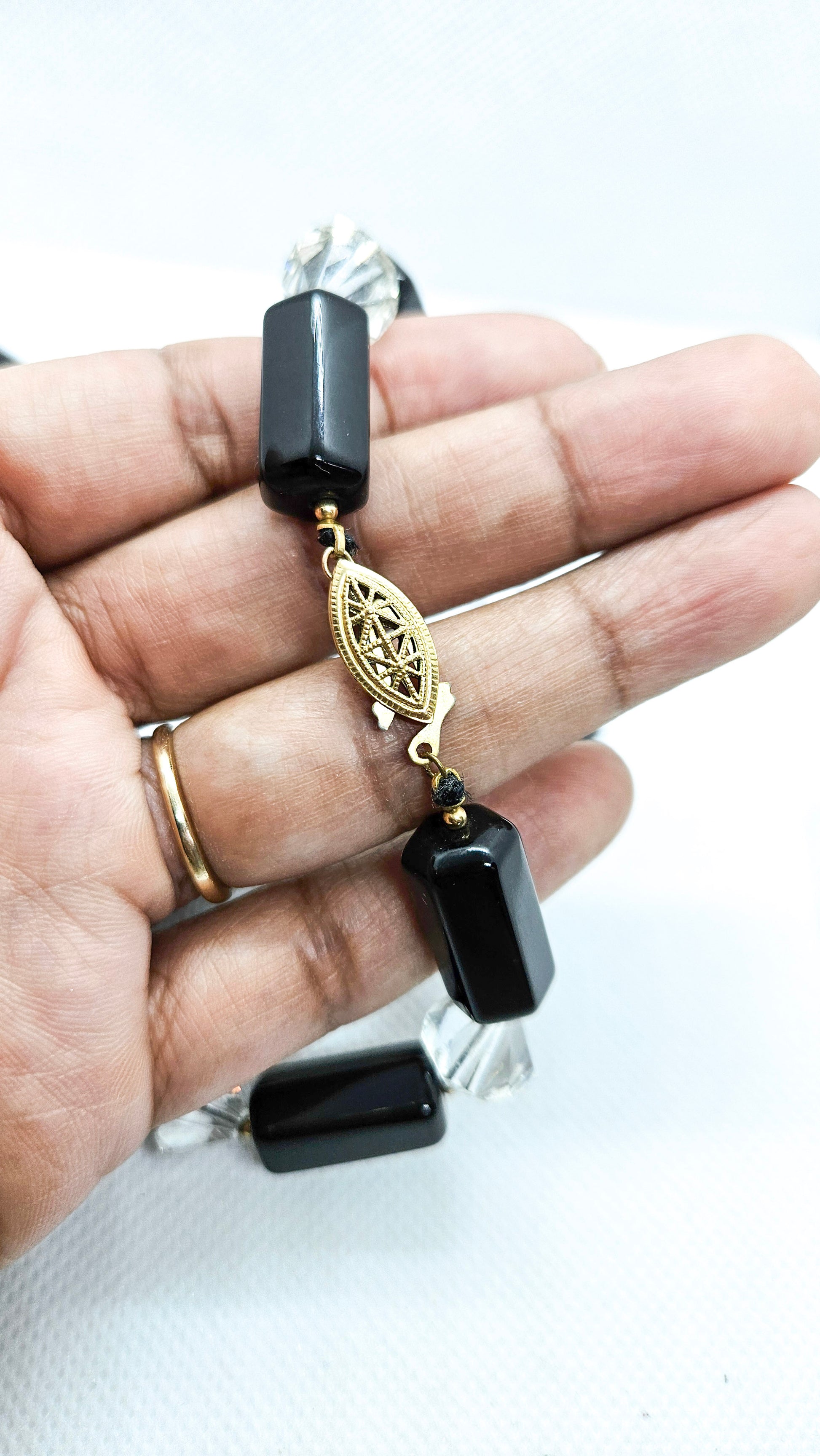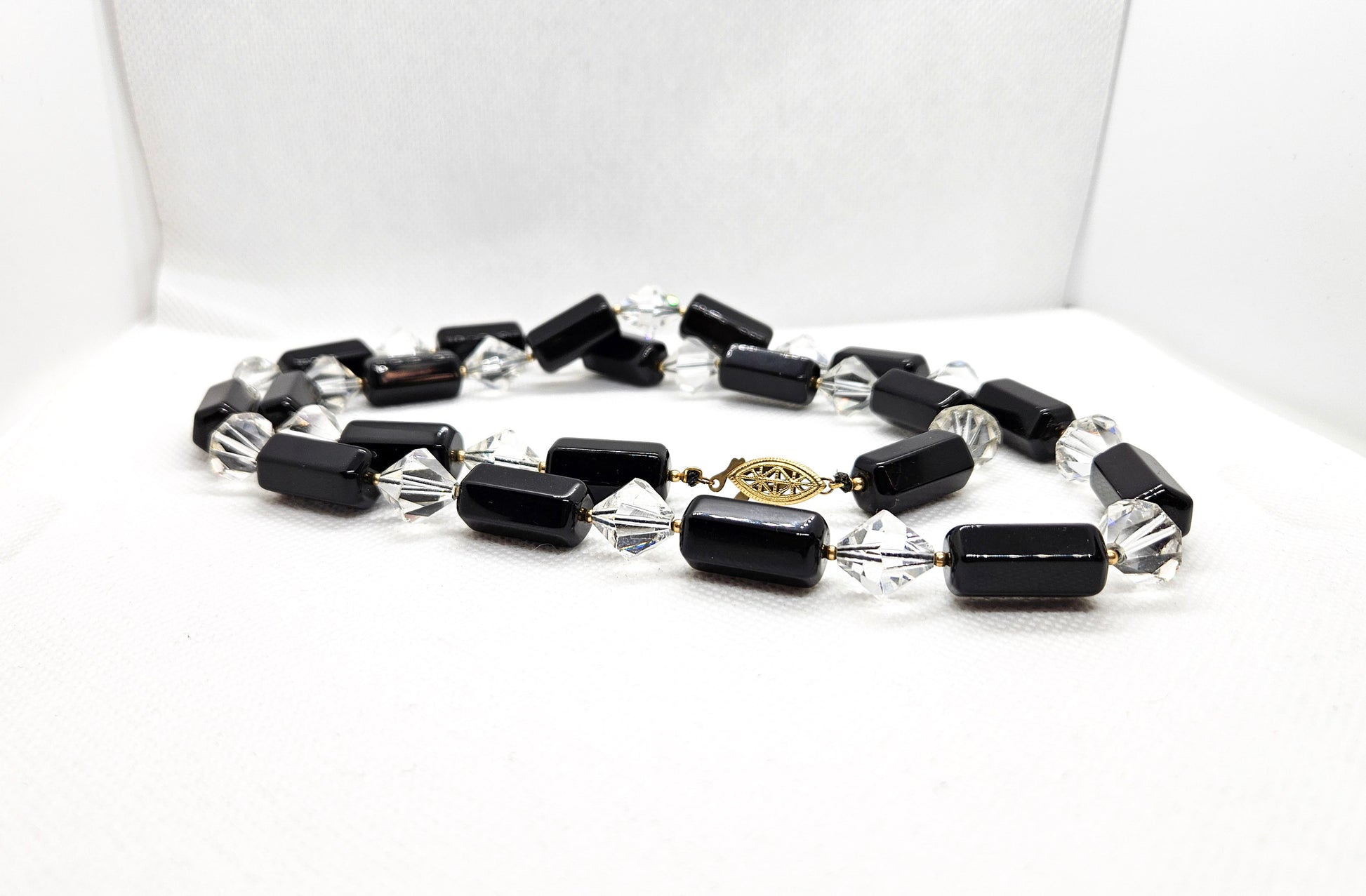 Vintage Black Quartz and Glass Bicone Beads Gold Filled Box Clasp Necklace