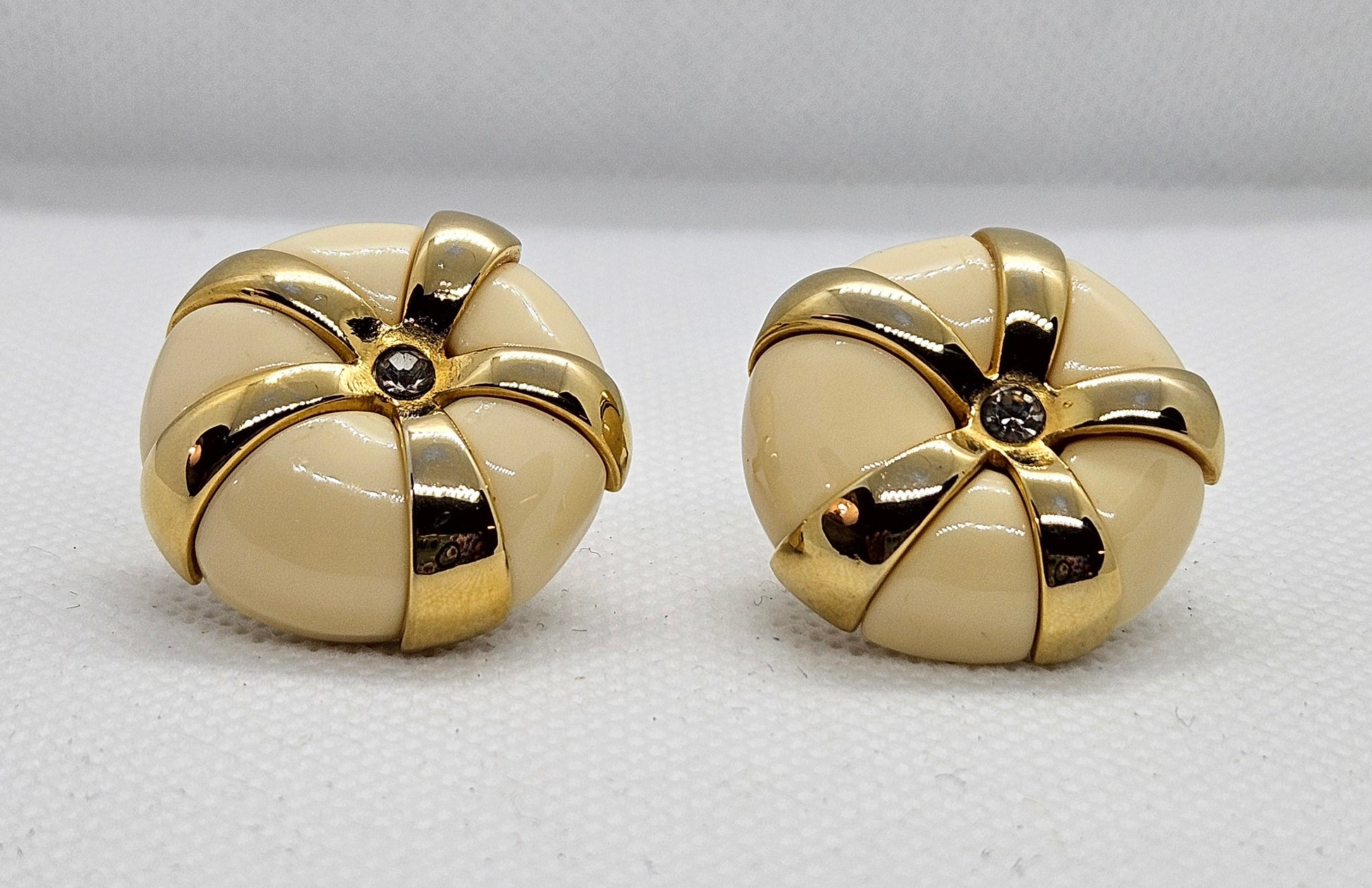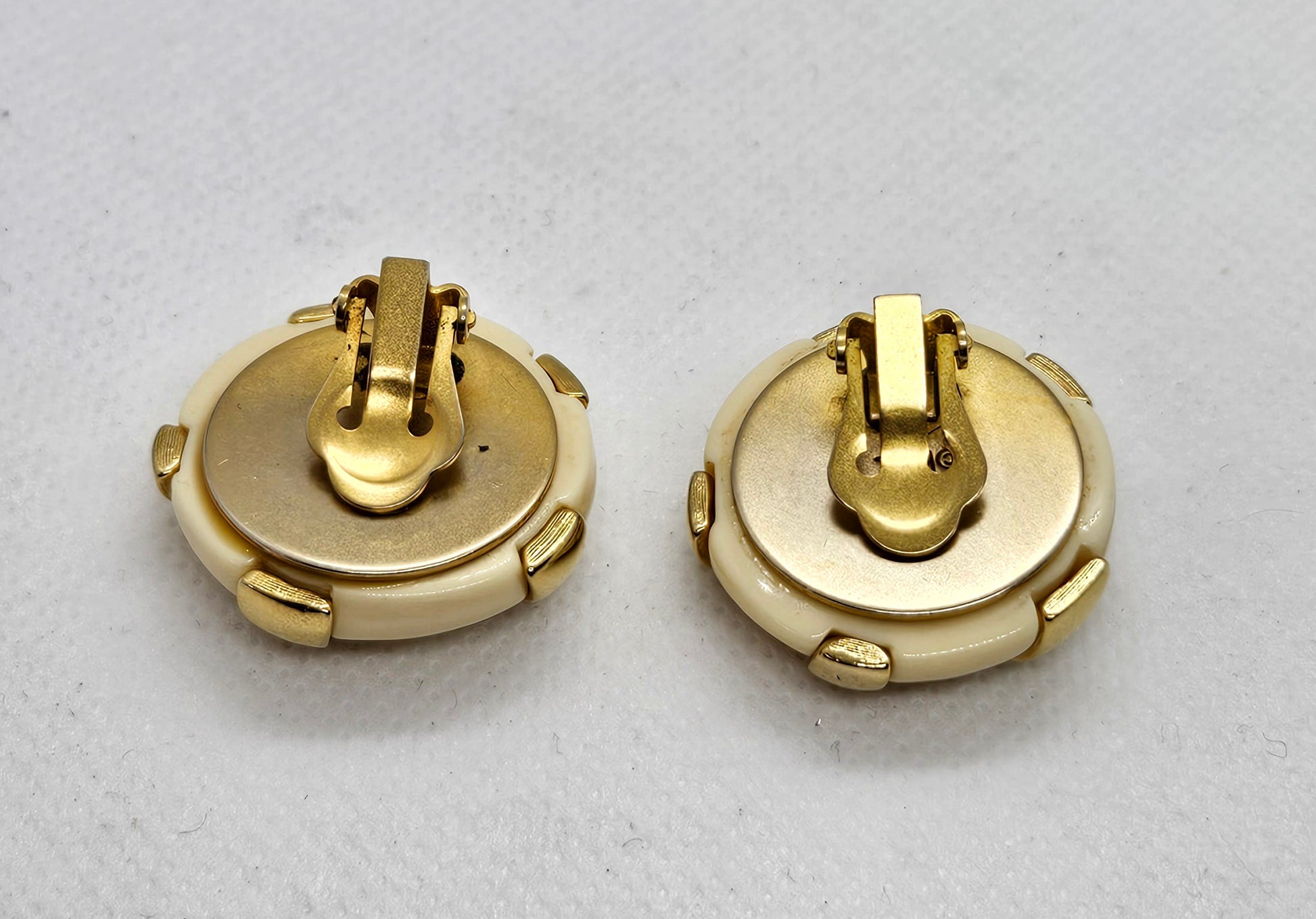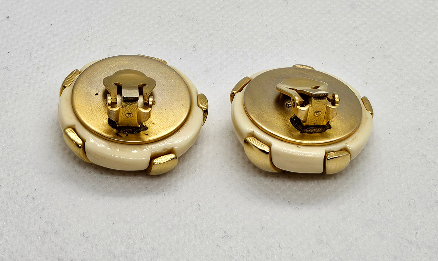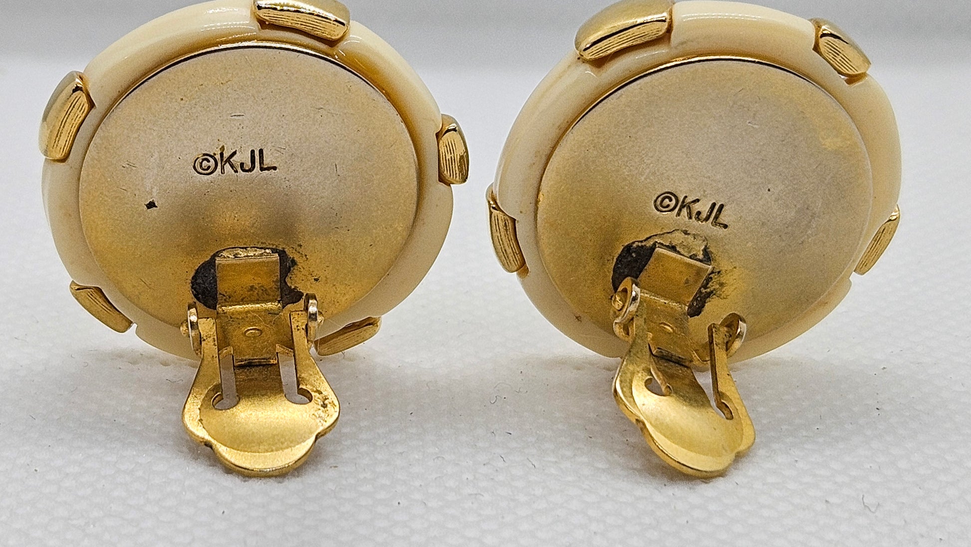 Vintage KJL Kenneth Jay Lane Lucite & Gold tone Button Clip On Earrings
