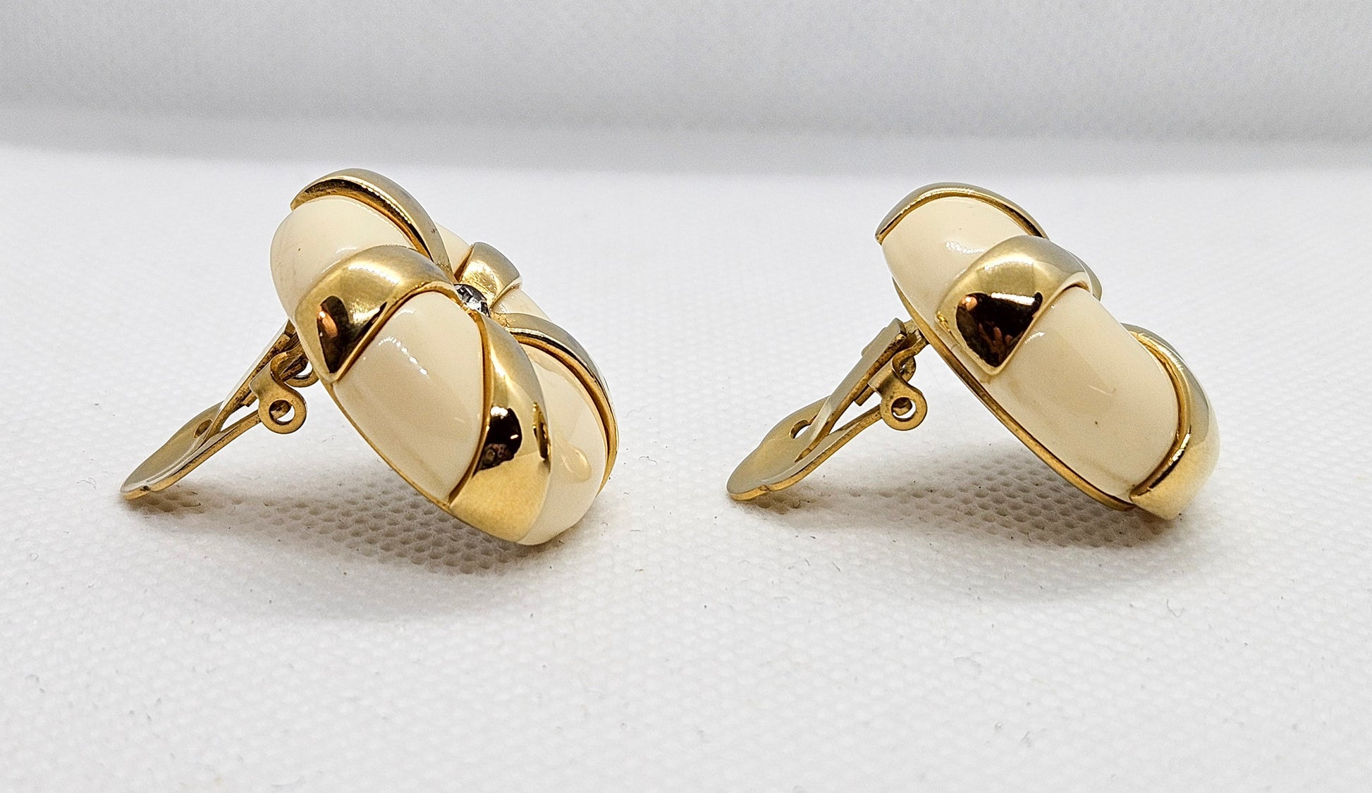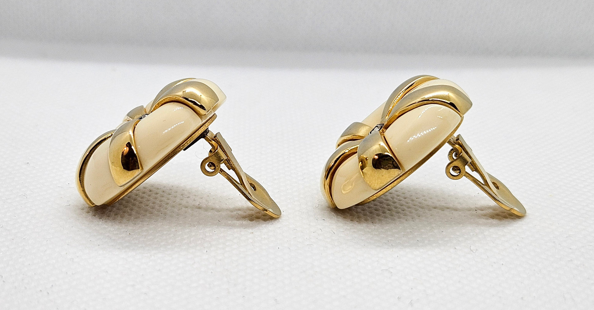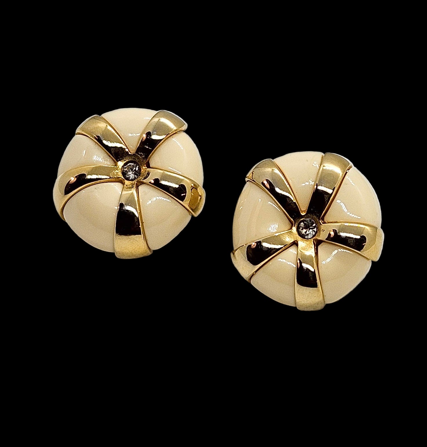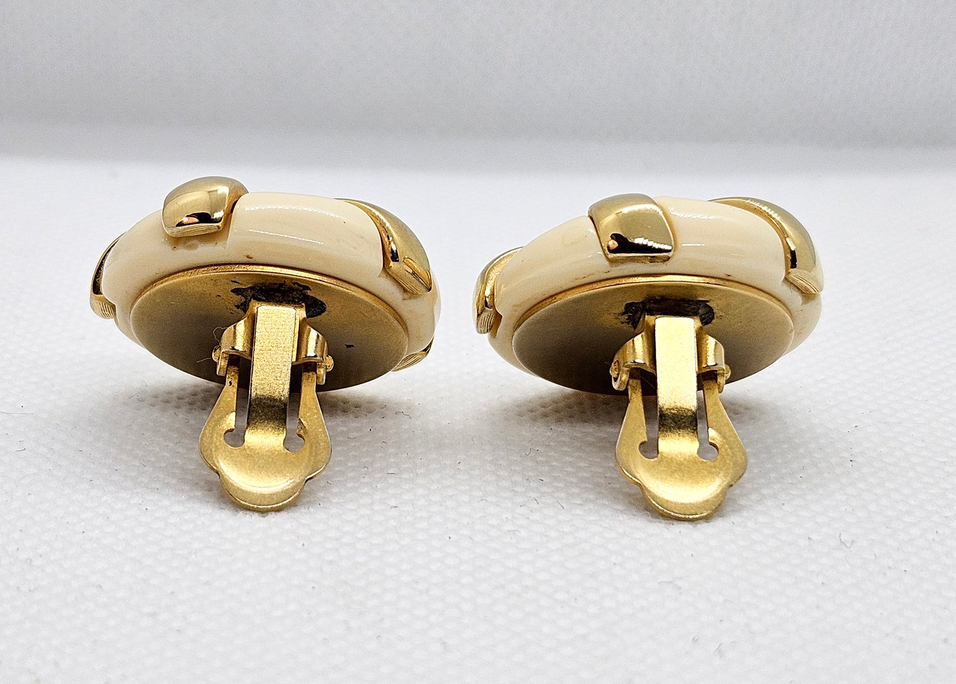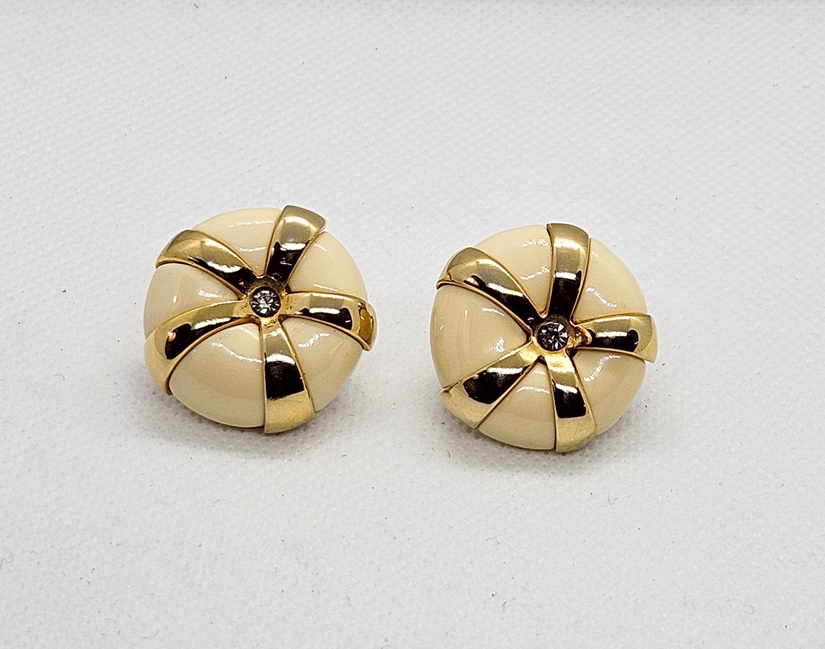 Vintage KJL Kenneth Jay Lane Lucite & Gold tone Button Clip On Earrings
