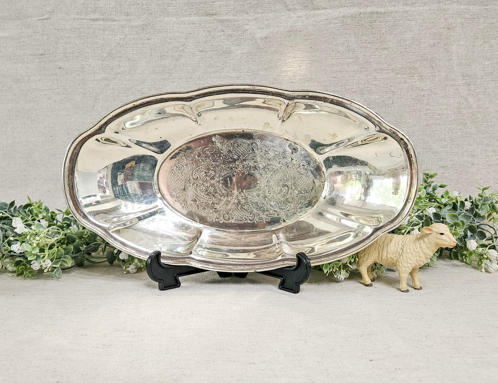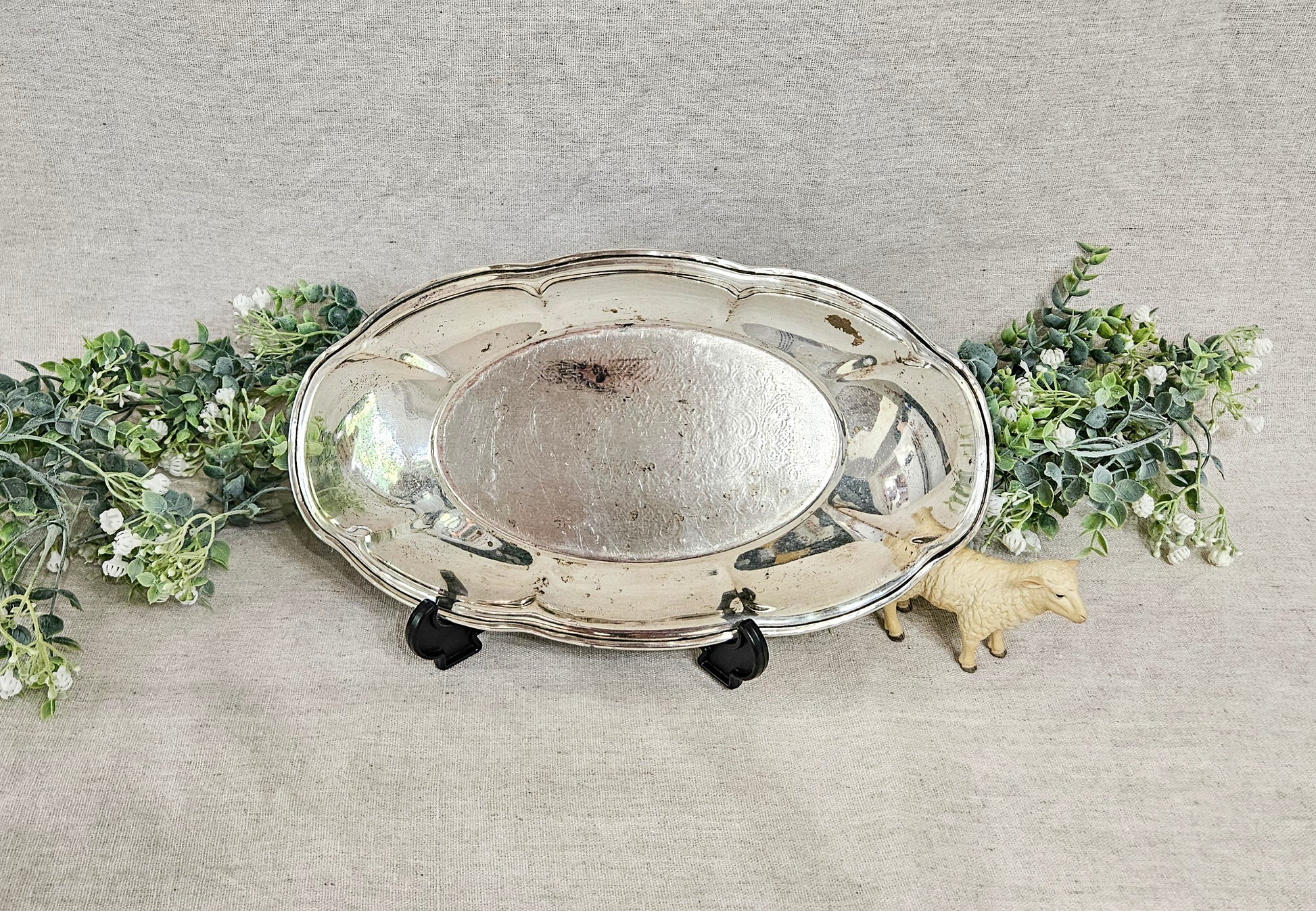 Vintage National Silver Co Silverplate Bread Tray 1950s Mid Century Hollowware Silver Over Copper Oval Serving Dish Tarnished Silver