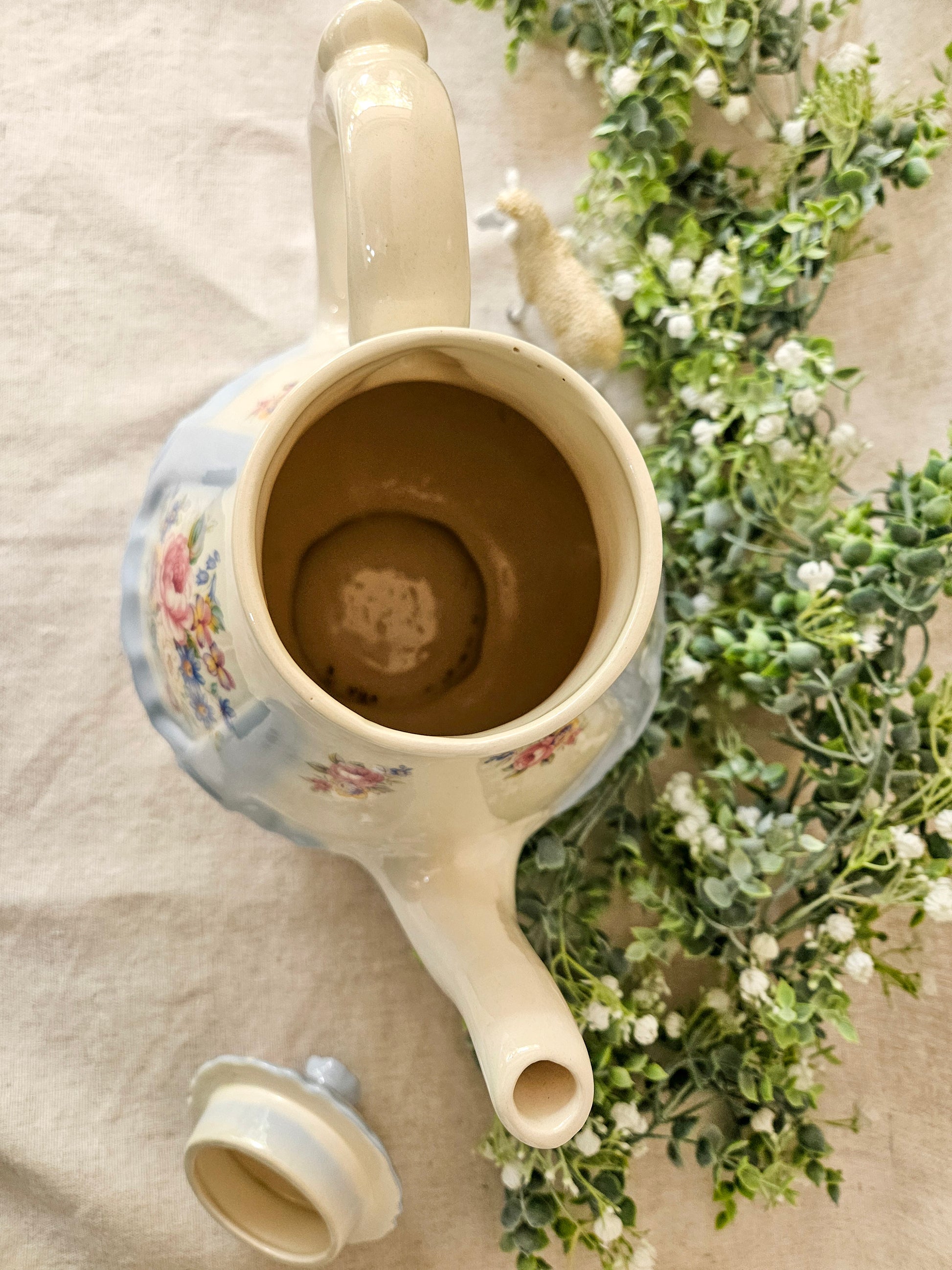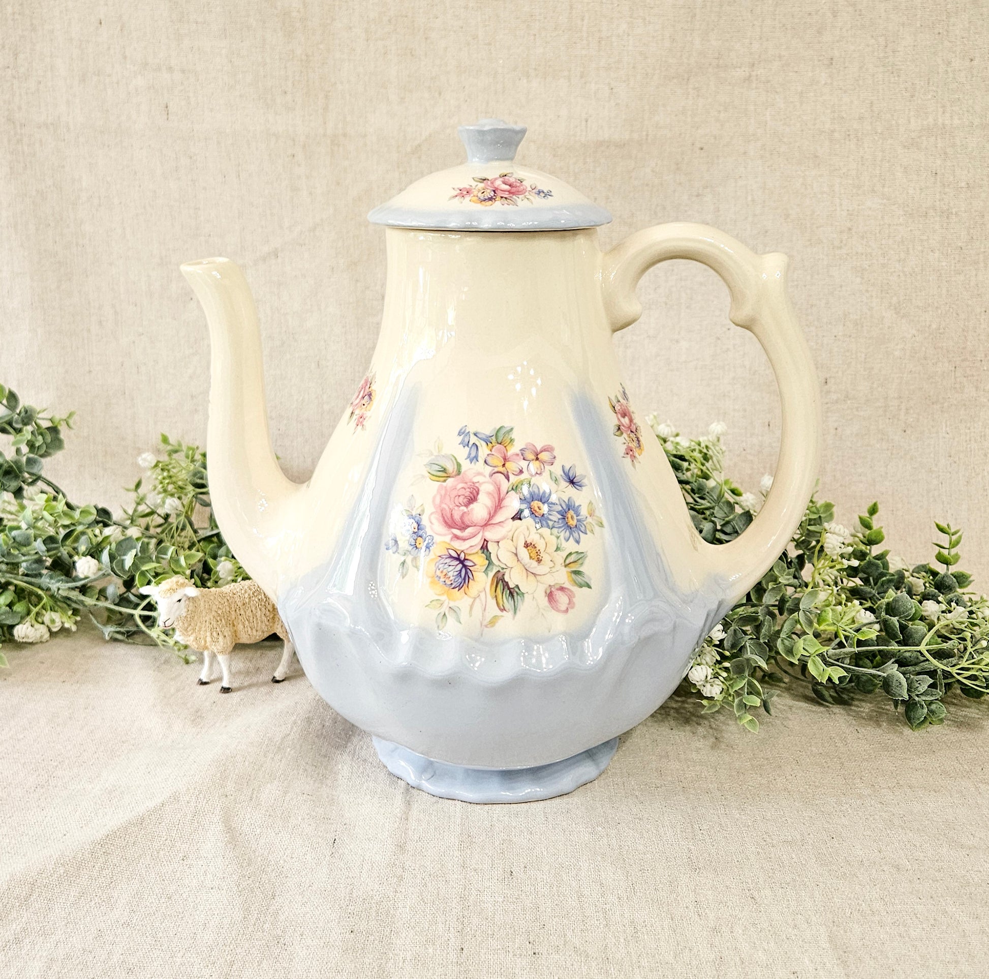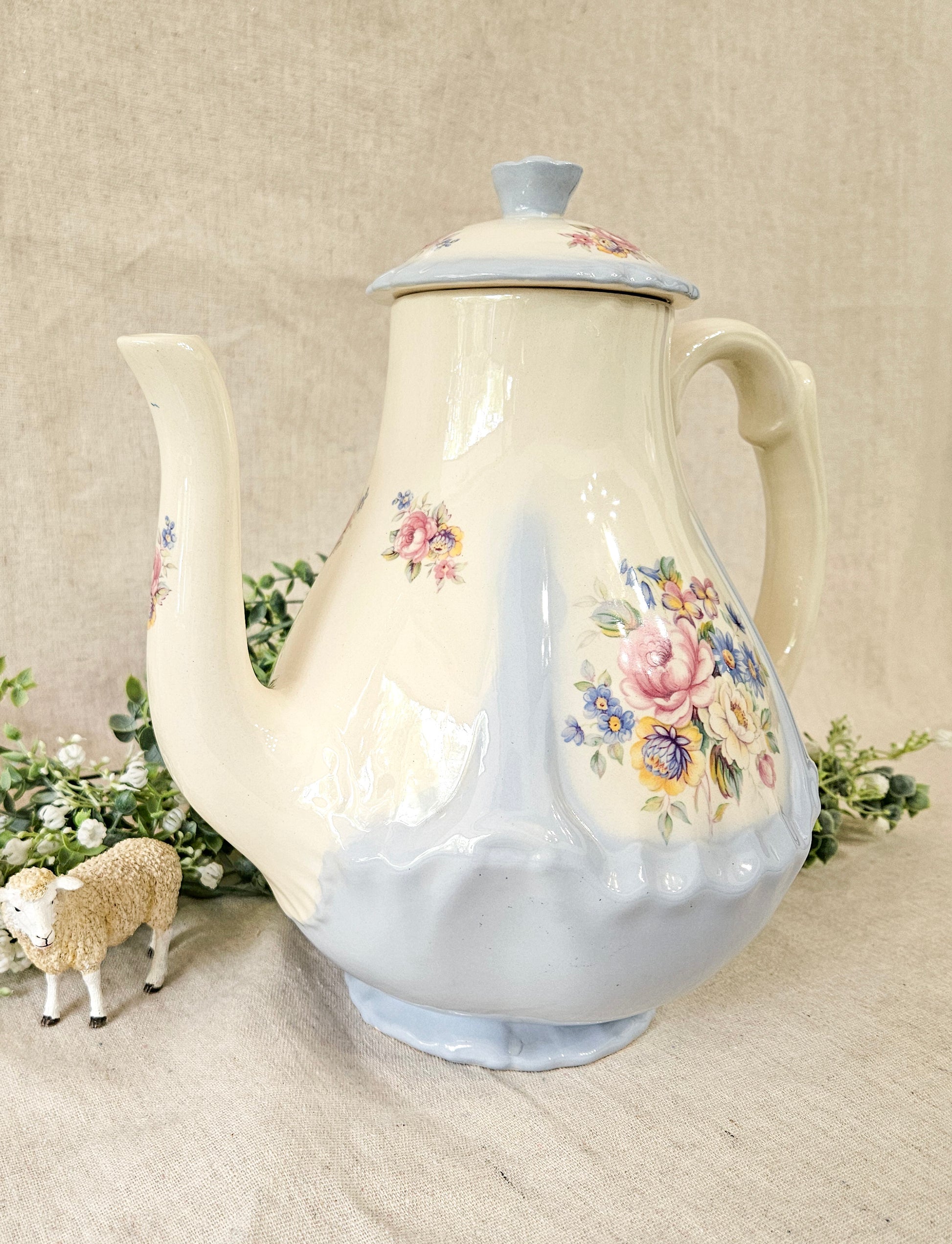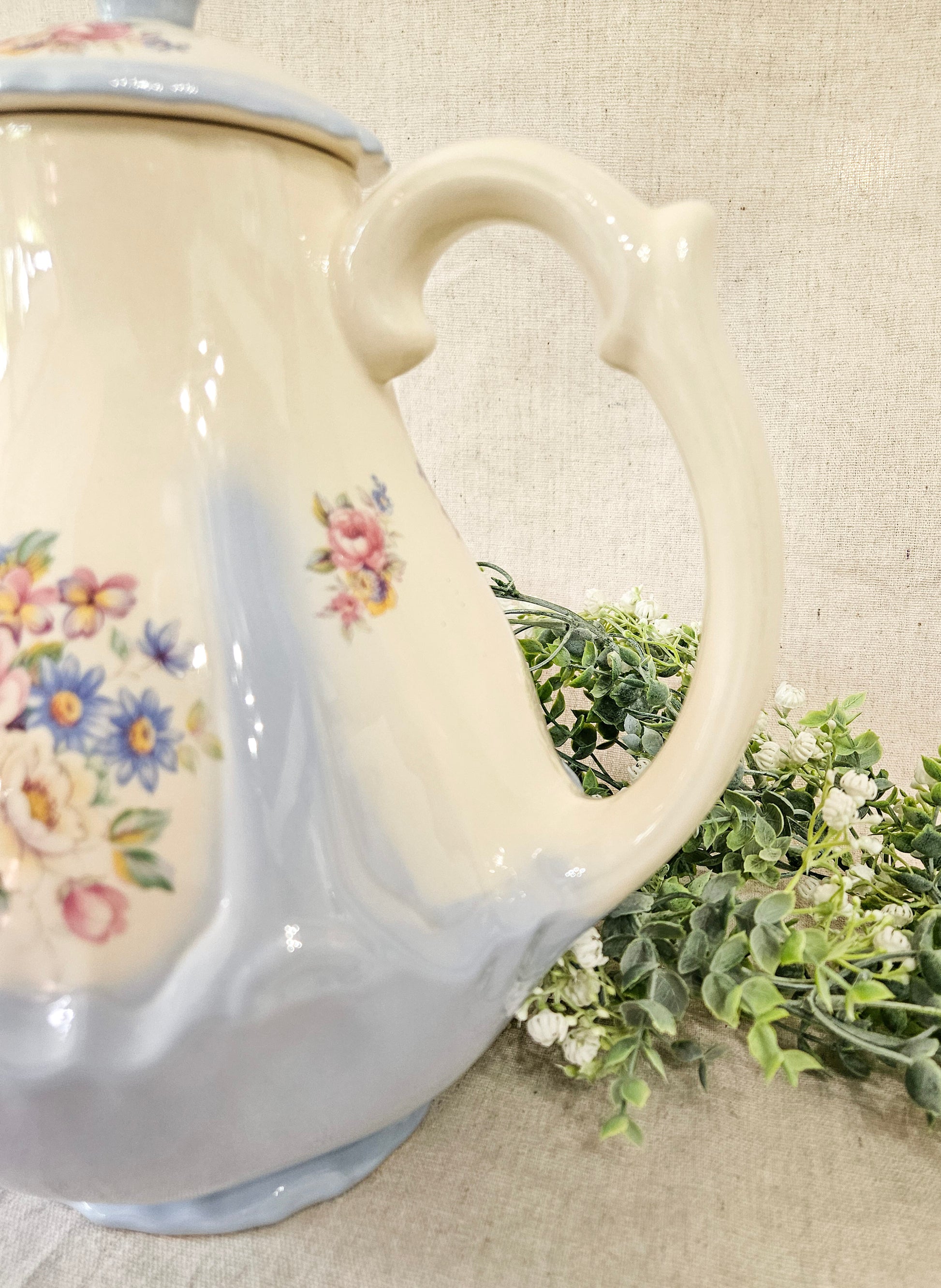 Vintage Powder Blue Floral Coffee Pot