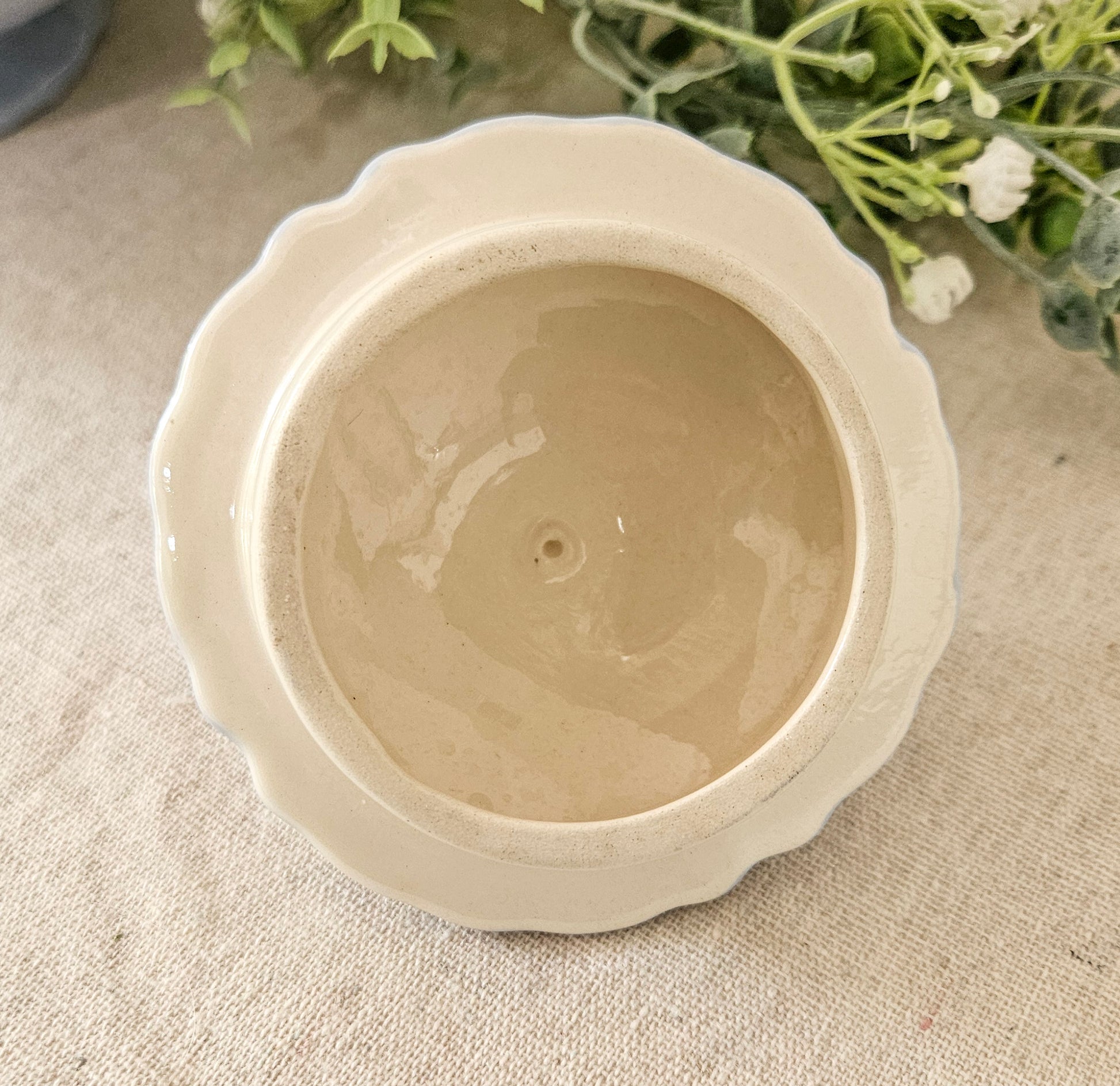 I do believe this is an American ironstone pot. It has a very distinct bell sound when knocked on. The underside of the lid and pot are glazed, except for the rim. However, it is not very heavy, which is my only doubt.