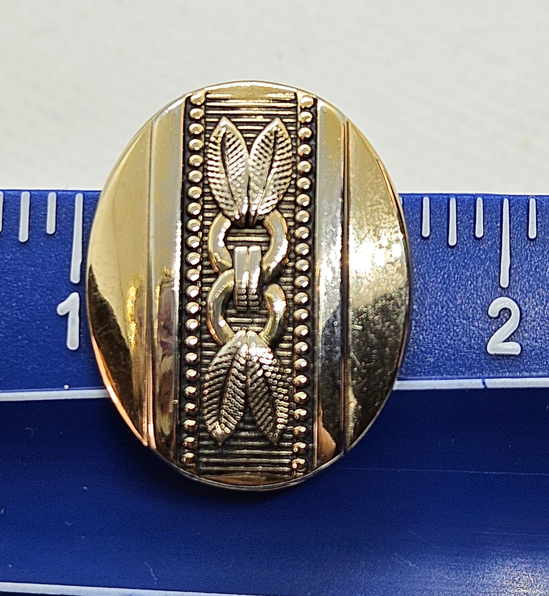 Available is a pair of Whiting & Davis Co. Two Tone Clip On Earrings. The clean lines combined with the decorative elements place these earrings within a vintage aesthetic that aligns with the Art Deco period's emphasis on elegance.