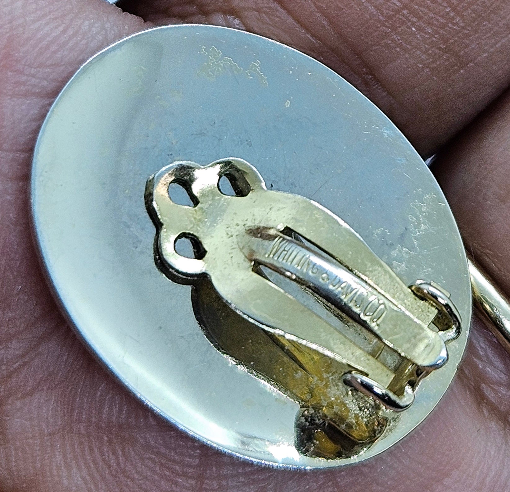 Whiting & Davis Co. Two Tone Art Deco Clip On Earrings